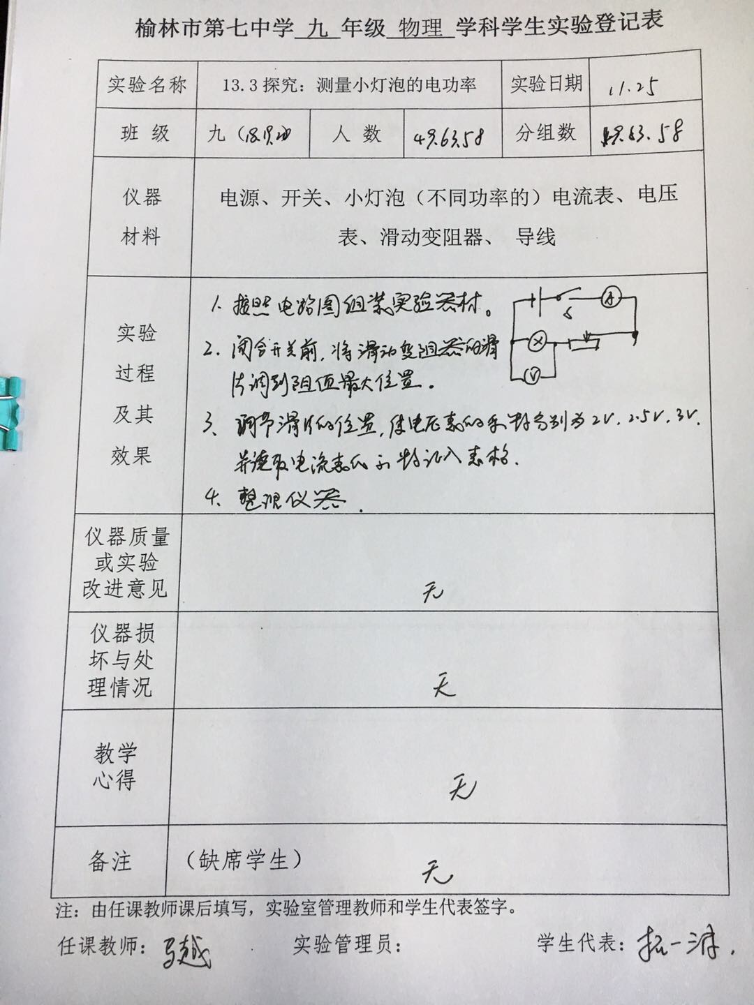 实验登记表
