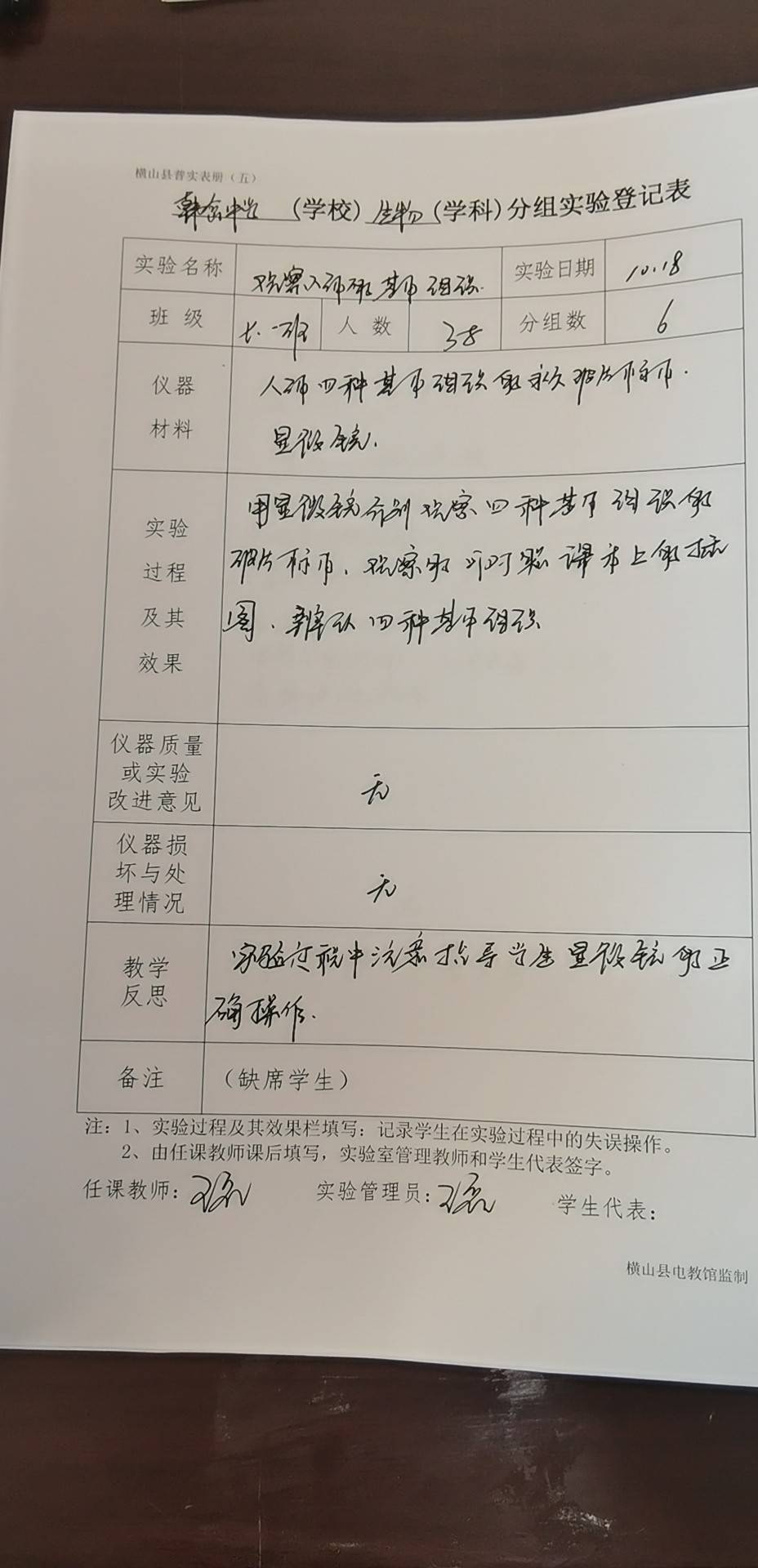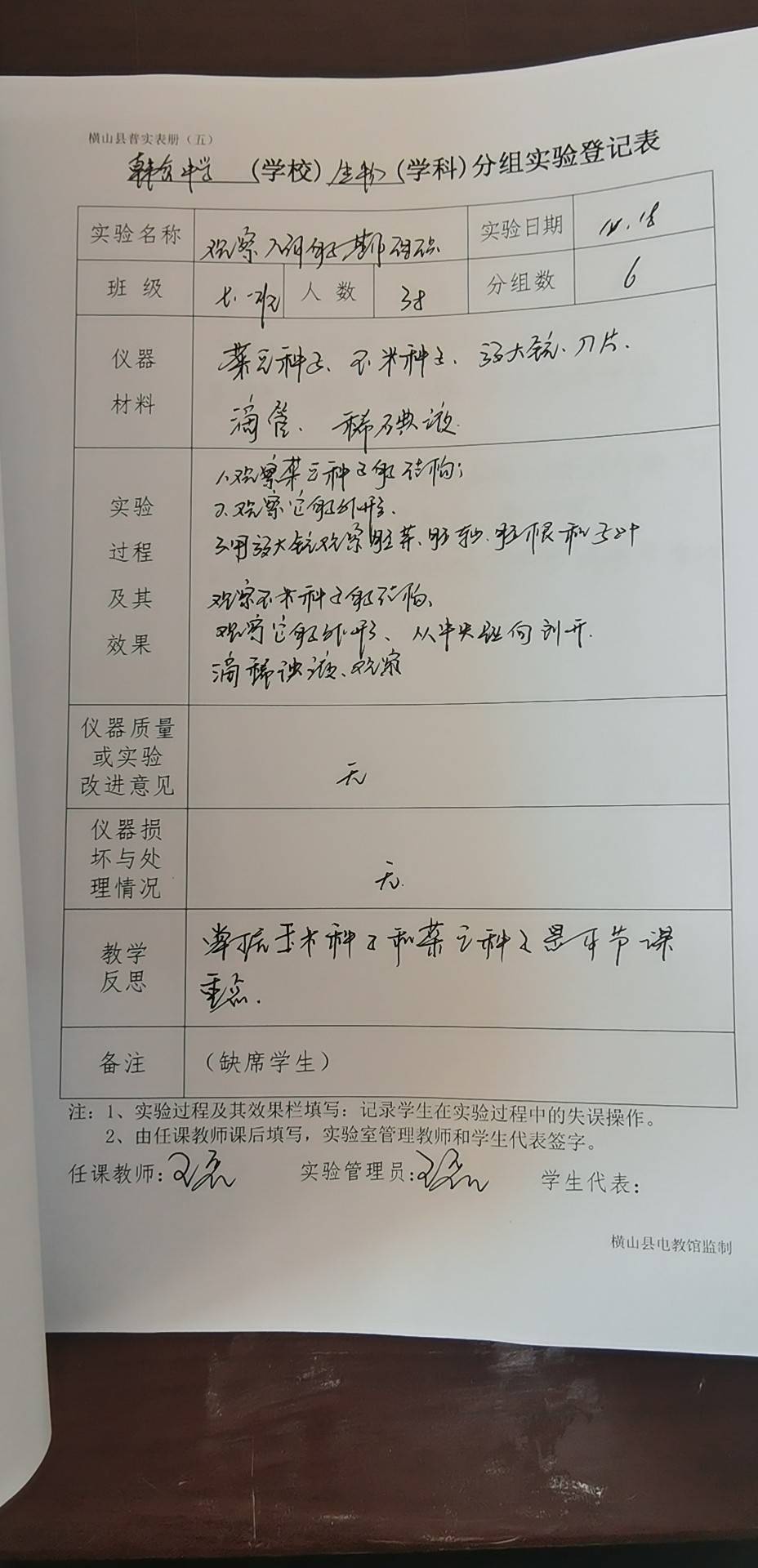 实验登记表