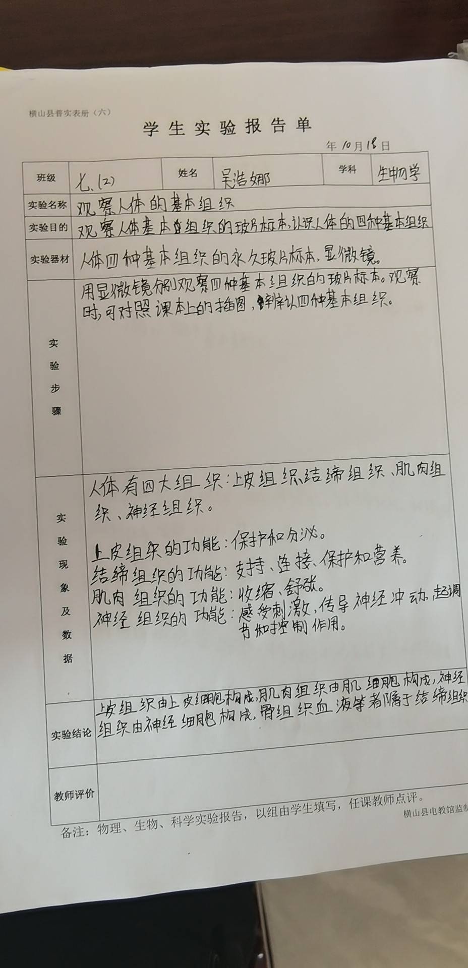 观察人体的基本组织