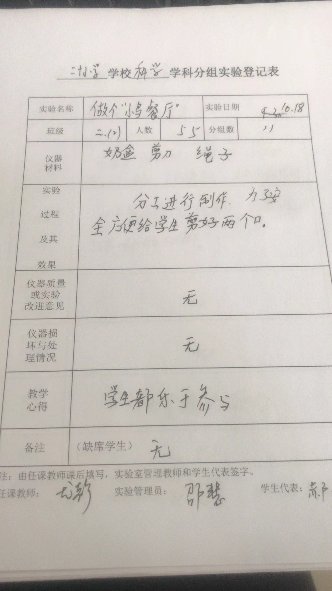 实验登记表