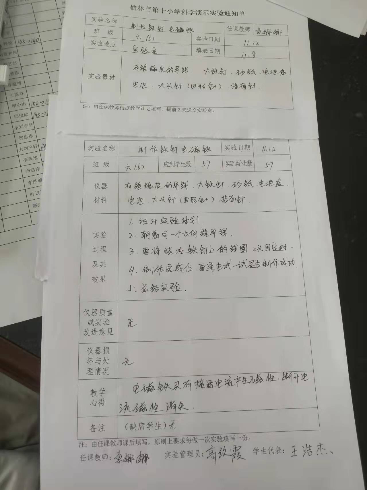 实验登记表