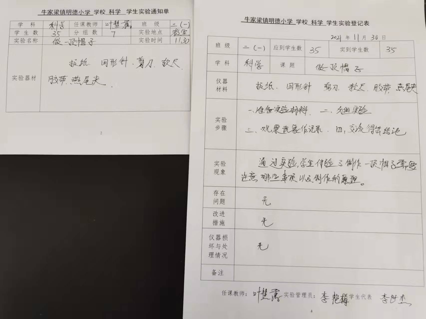 实验登记表