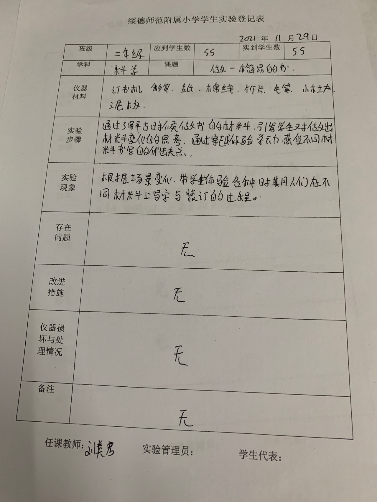 实验登记表