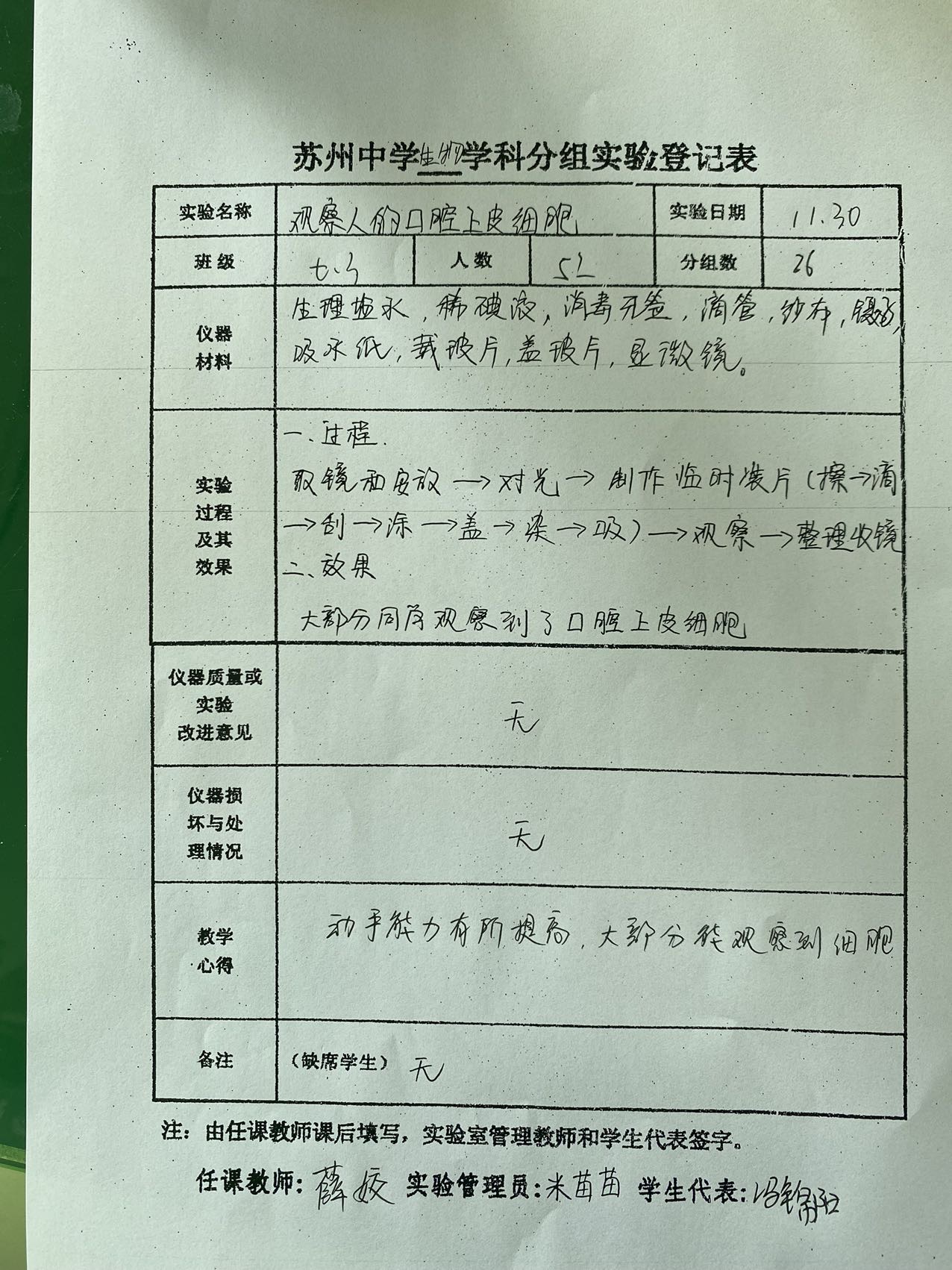 实验登记表