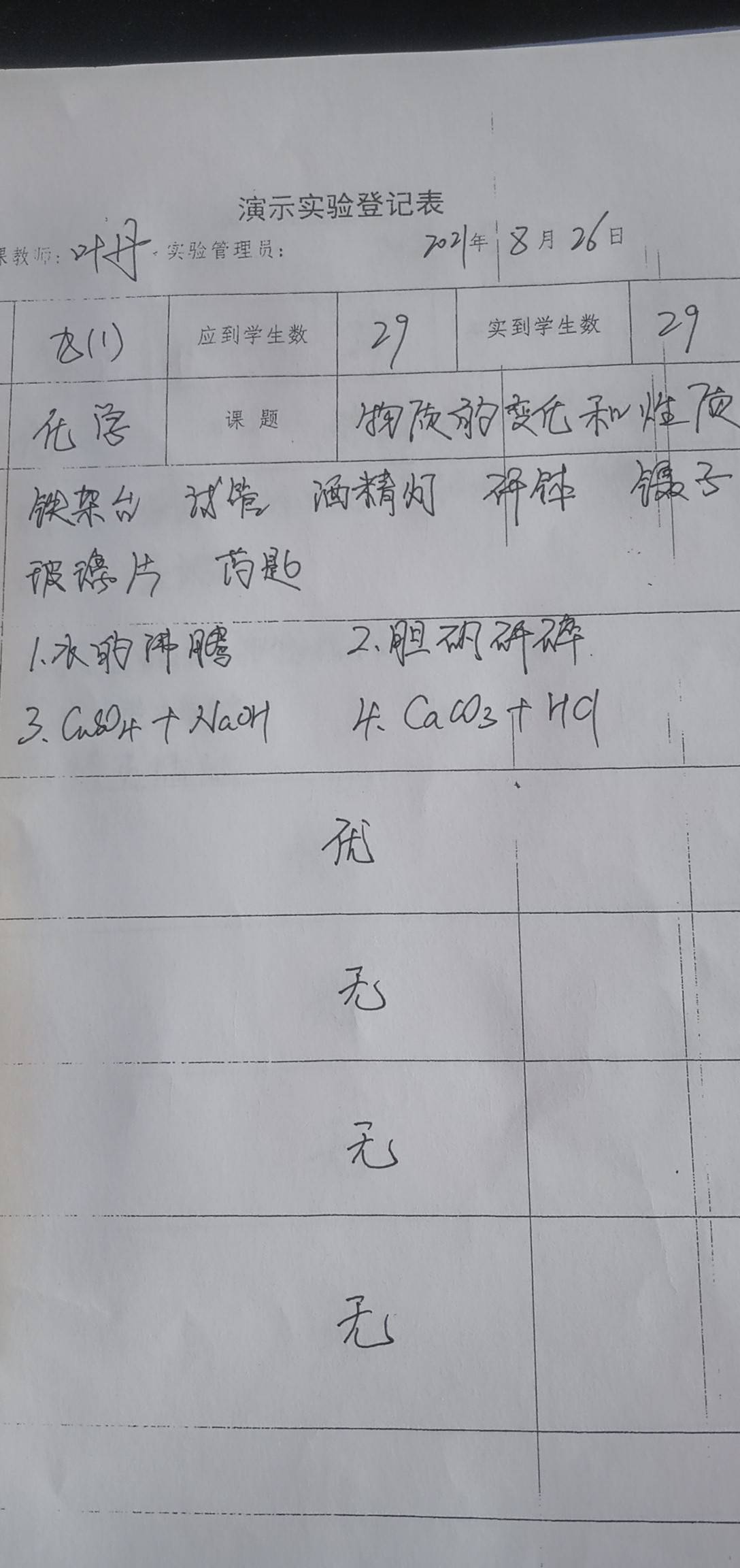 实验登记表