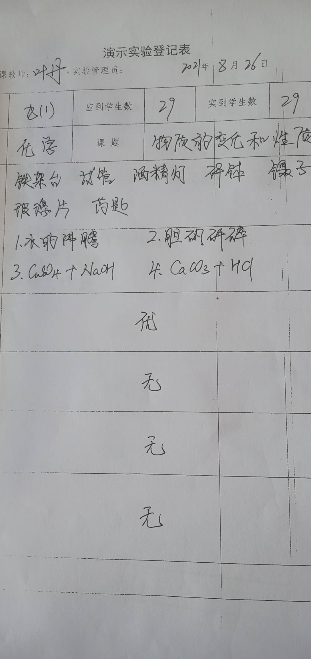 实验登记表
