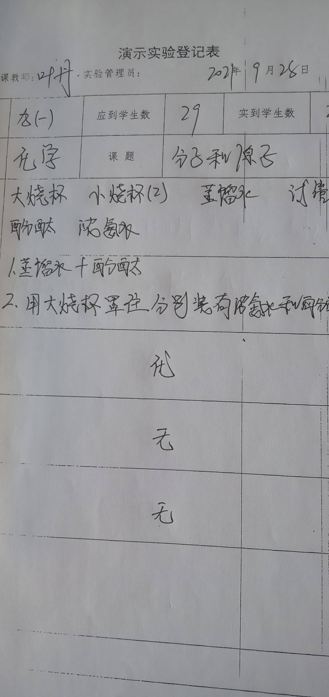 实验登记表