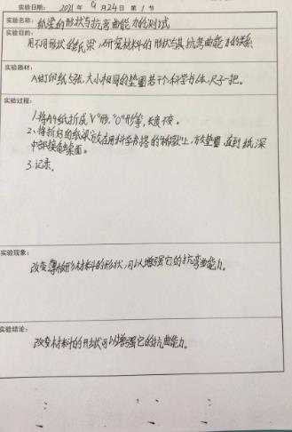 纸梁的形状与抗弯曲能力的测试