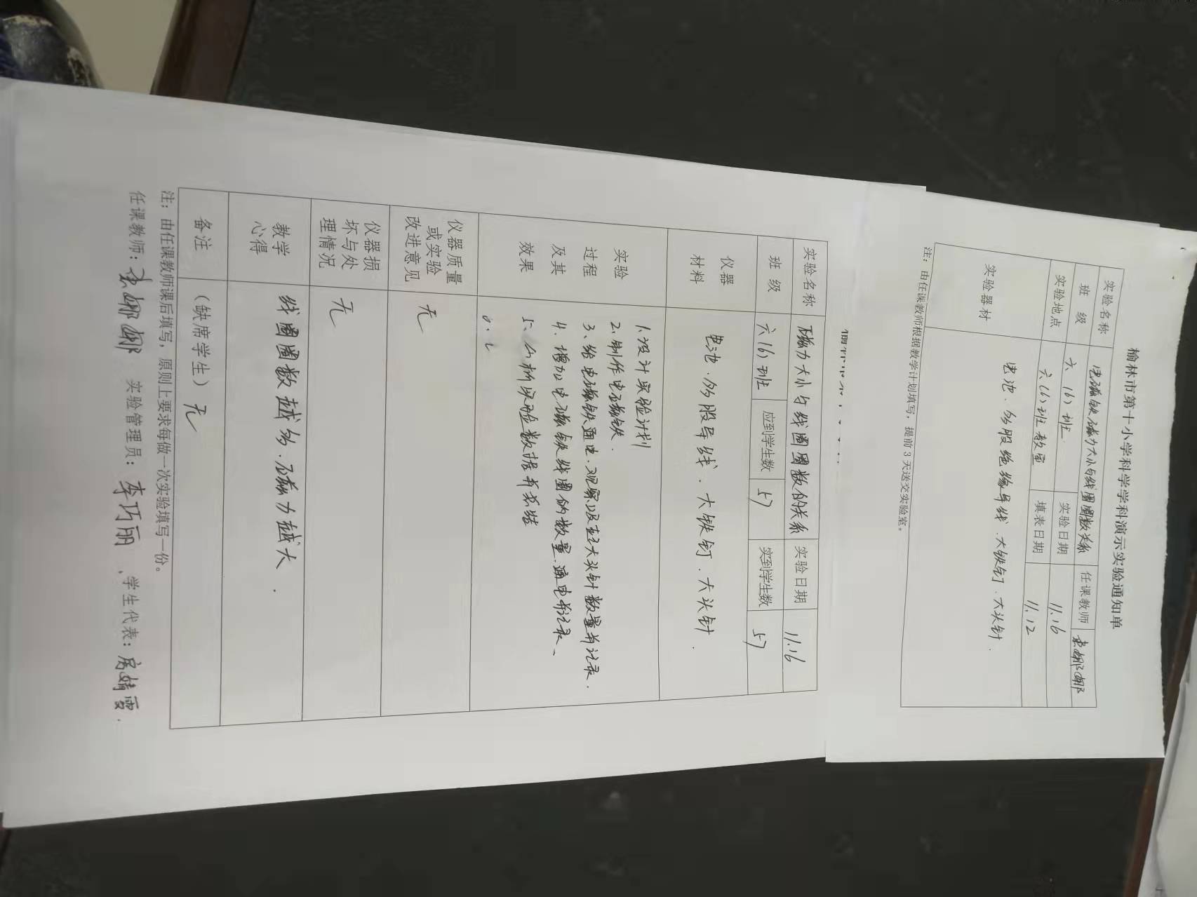 实验登记表