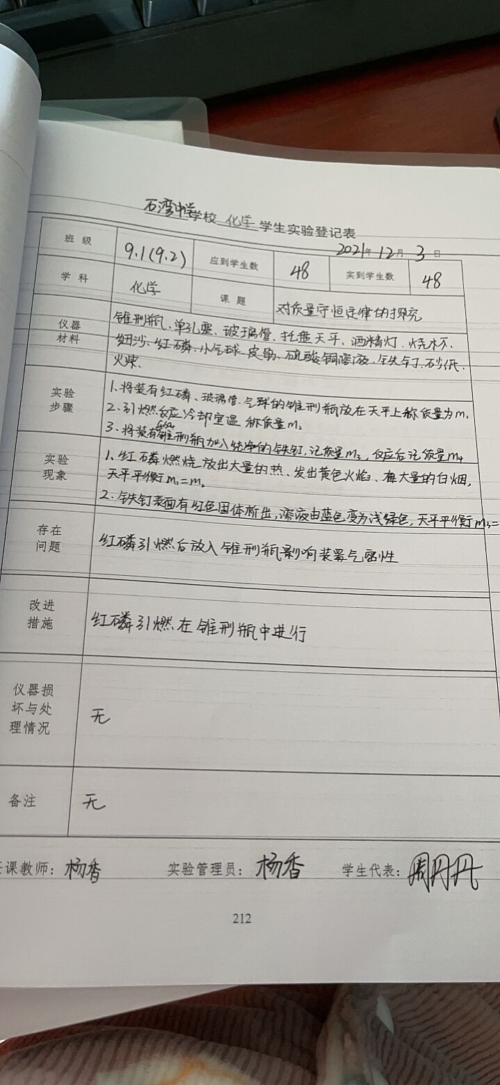 对质量守恒定律的探究