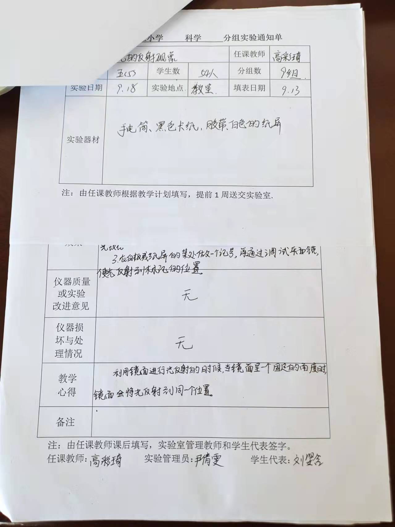 实验登记表