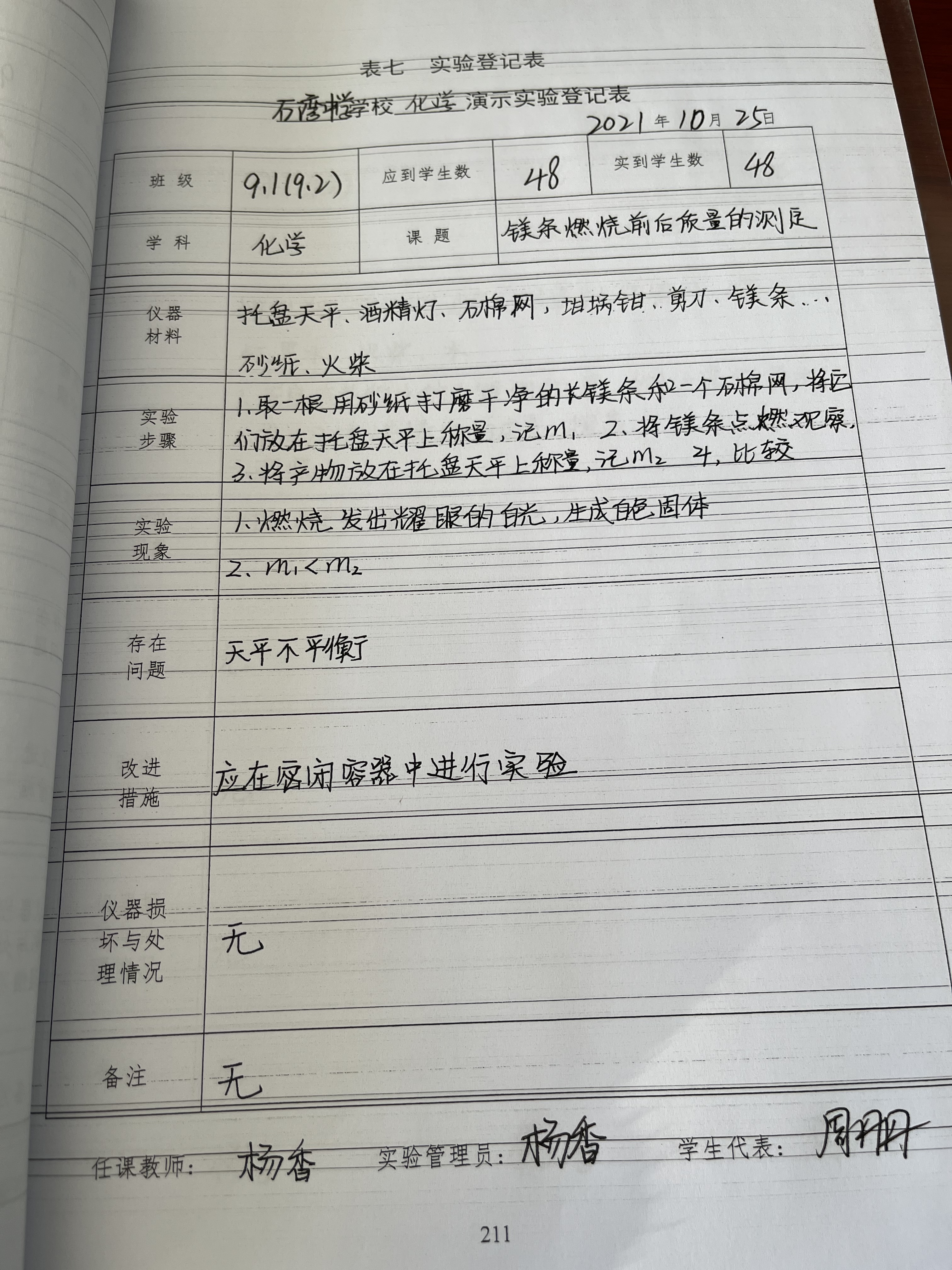 镁条燃烧前后质量的测定