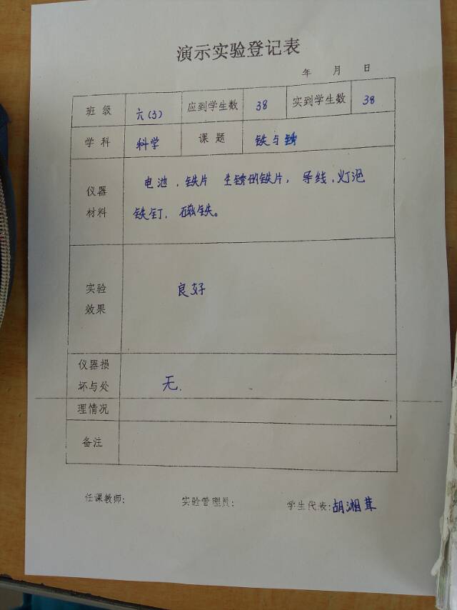 实验登记表