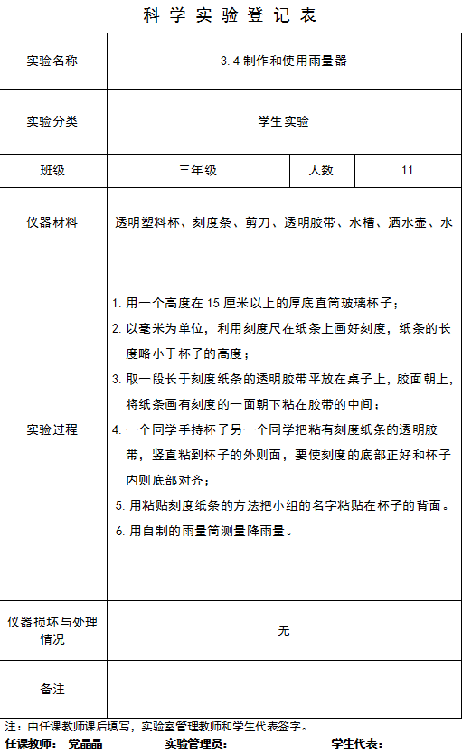 实验登记表