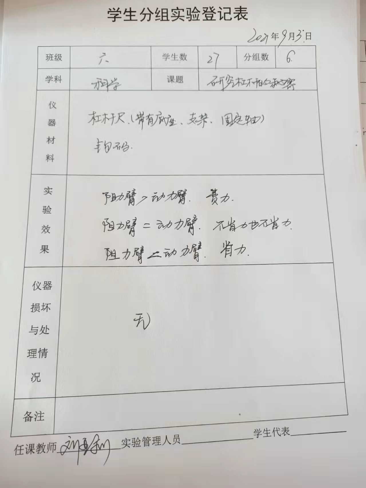 实验登记表