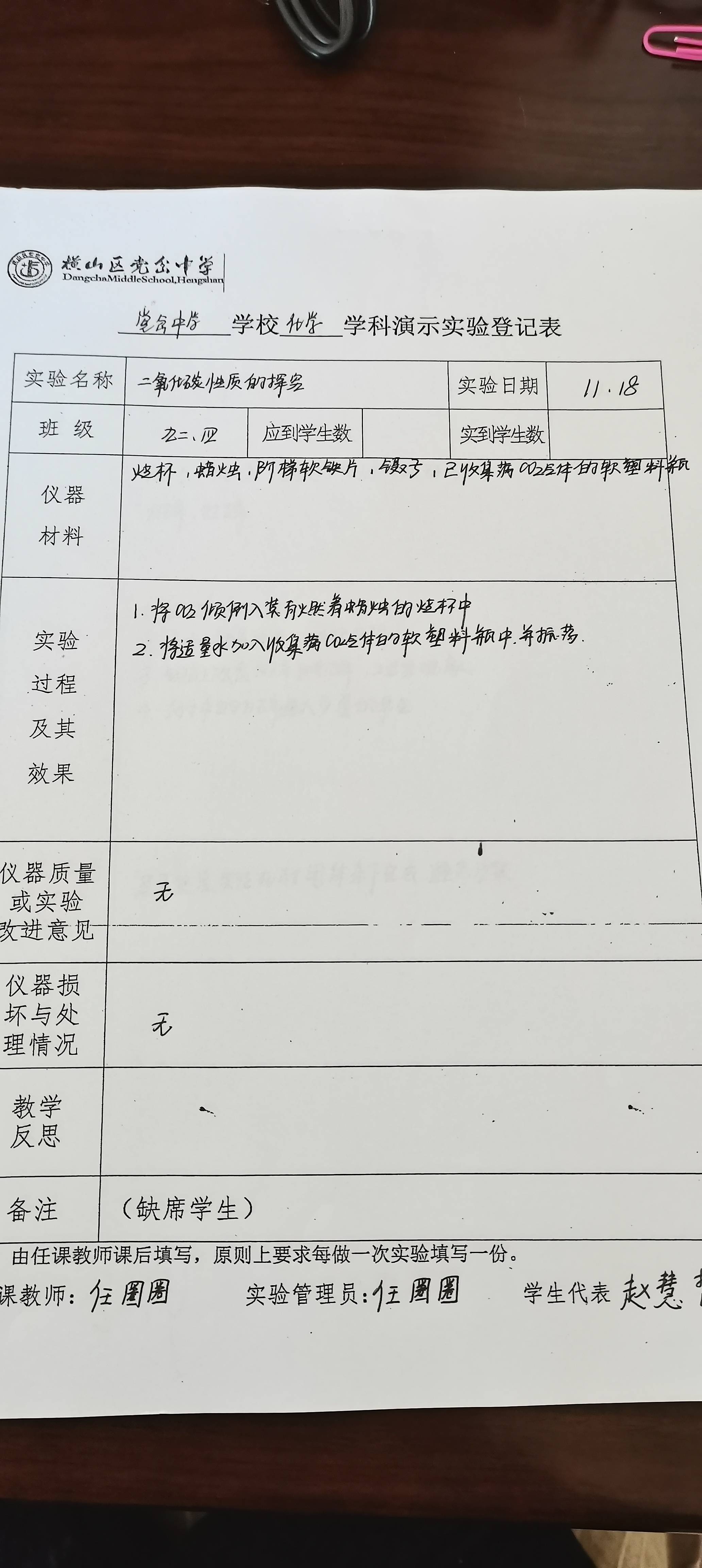 实验登记表