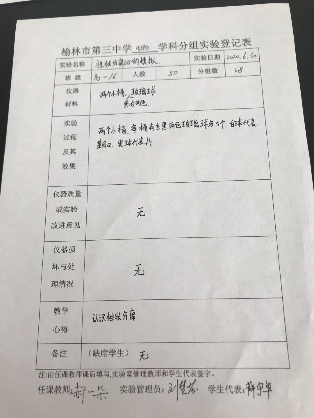 实验登记表