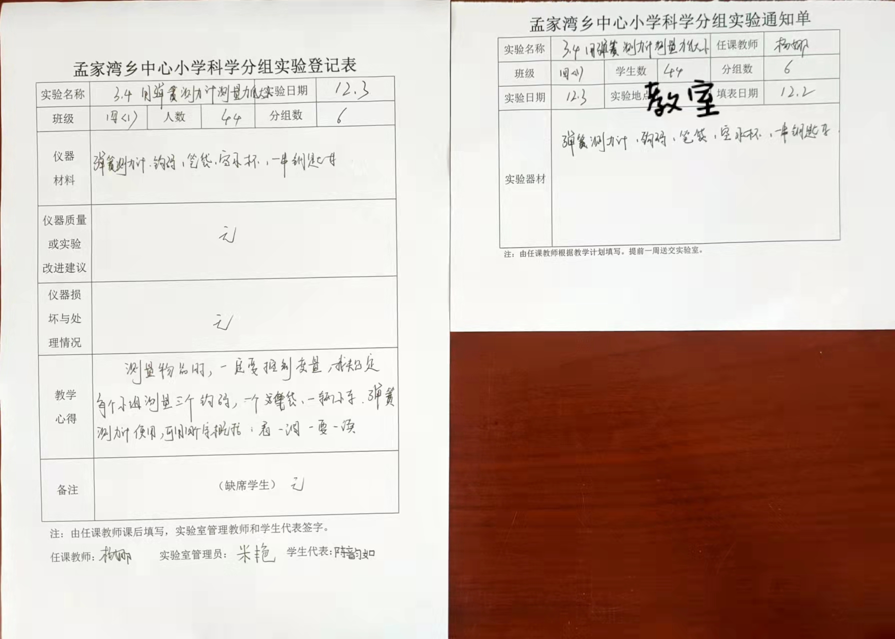 实验登记表