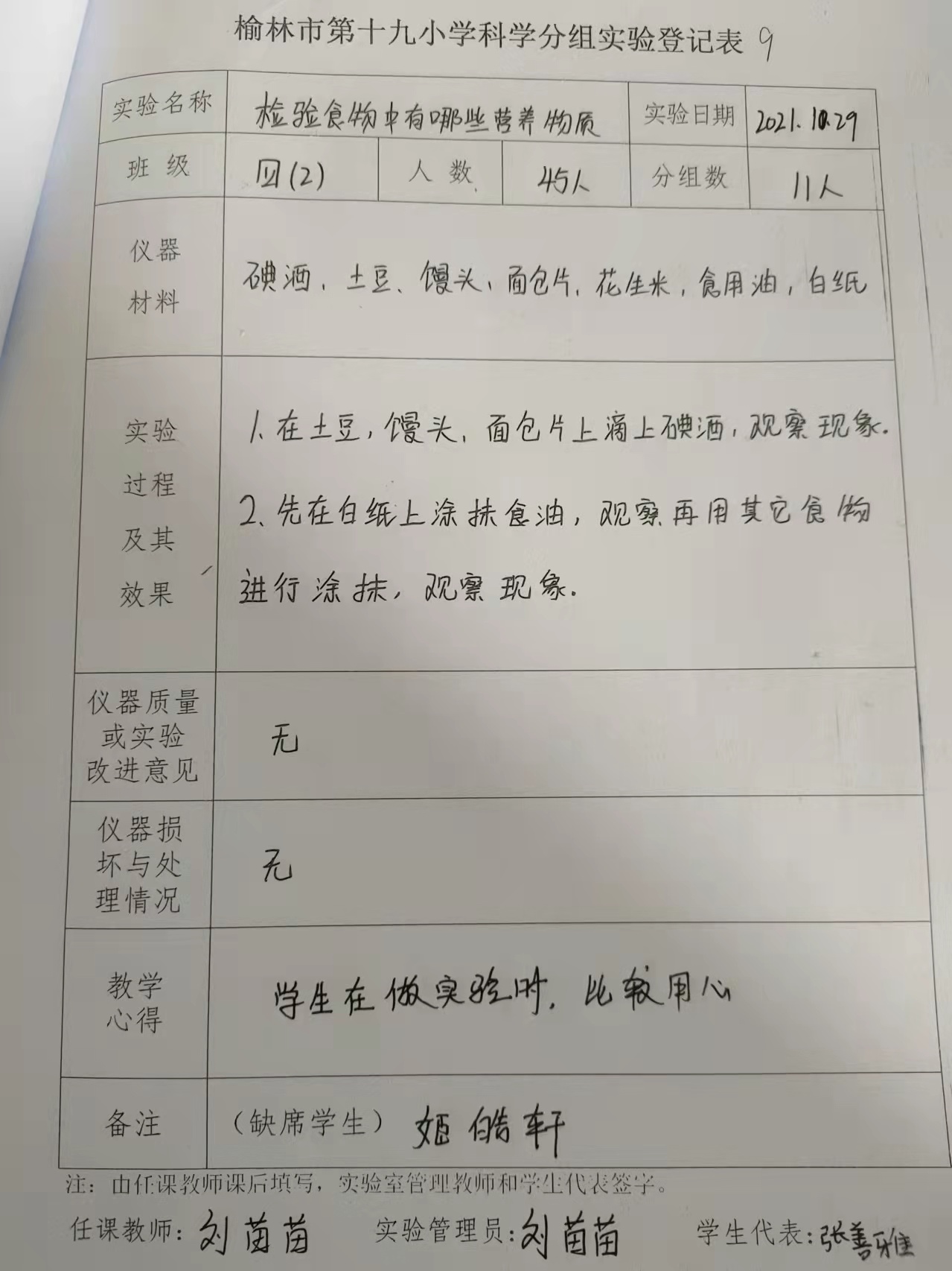 实验登记表