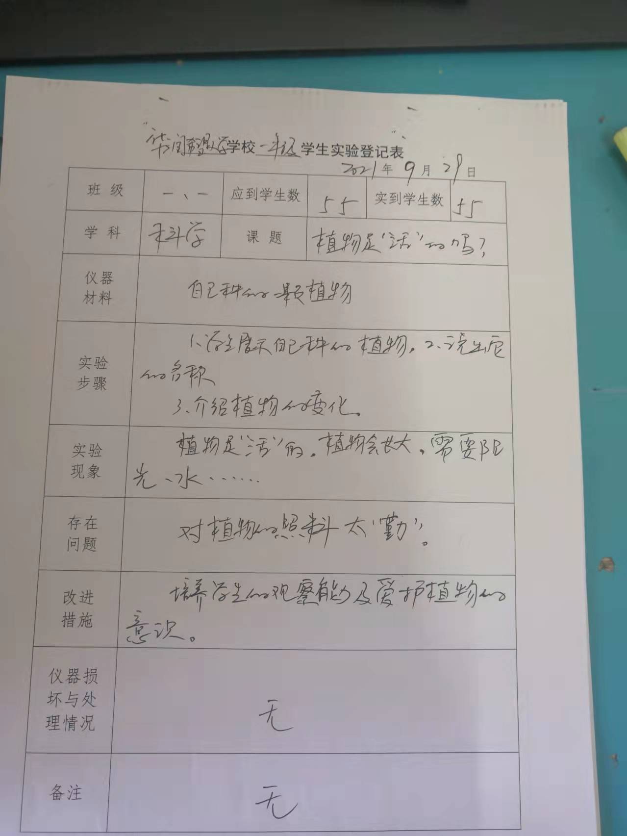 实验登记表