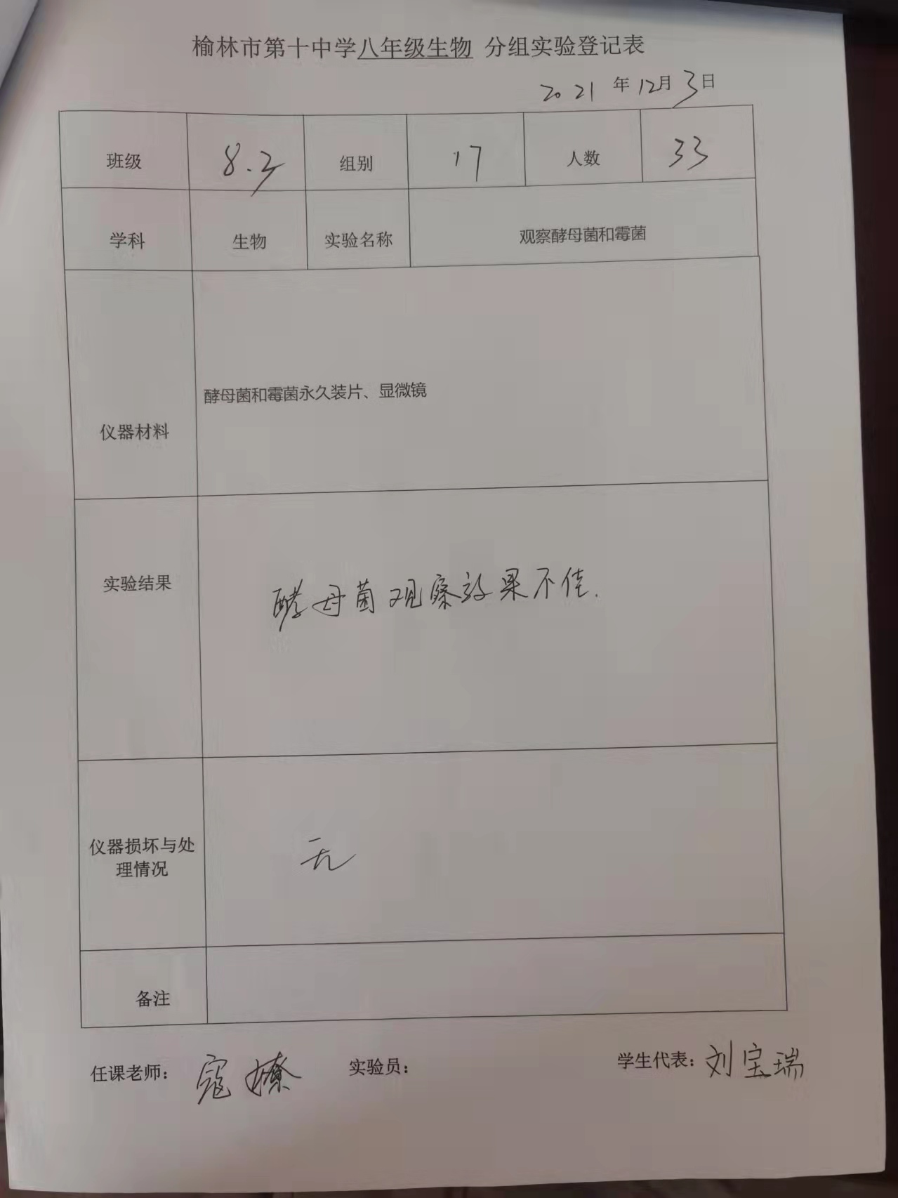 实验登记表