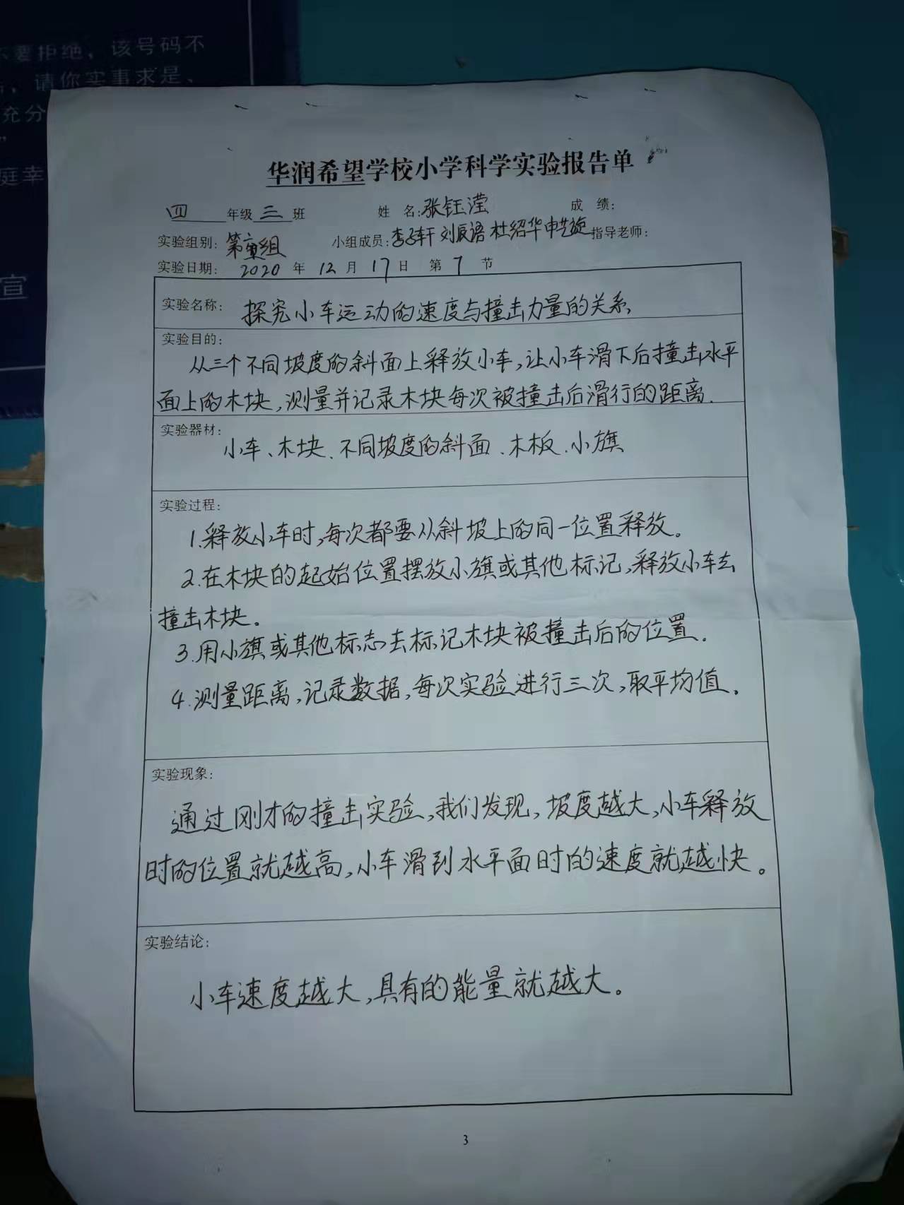 探究小车运动的速度与撞击力量的关系