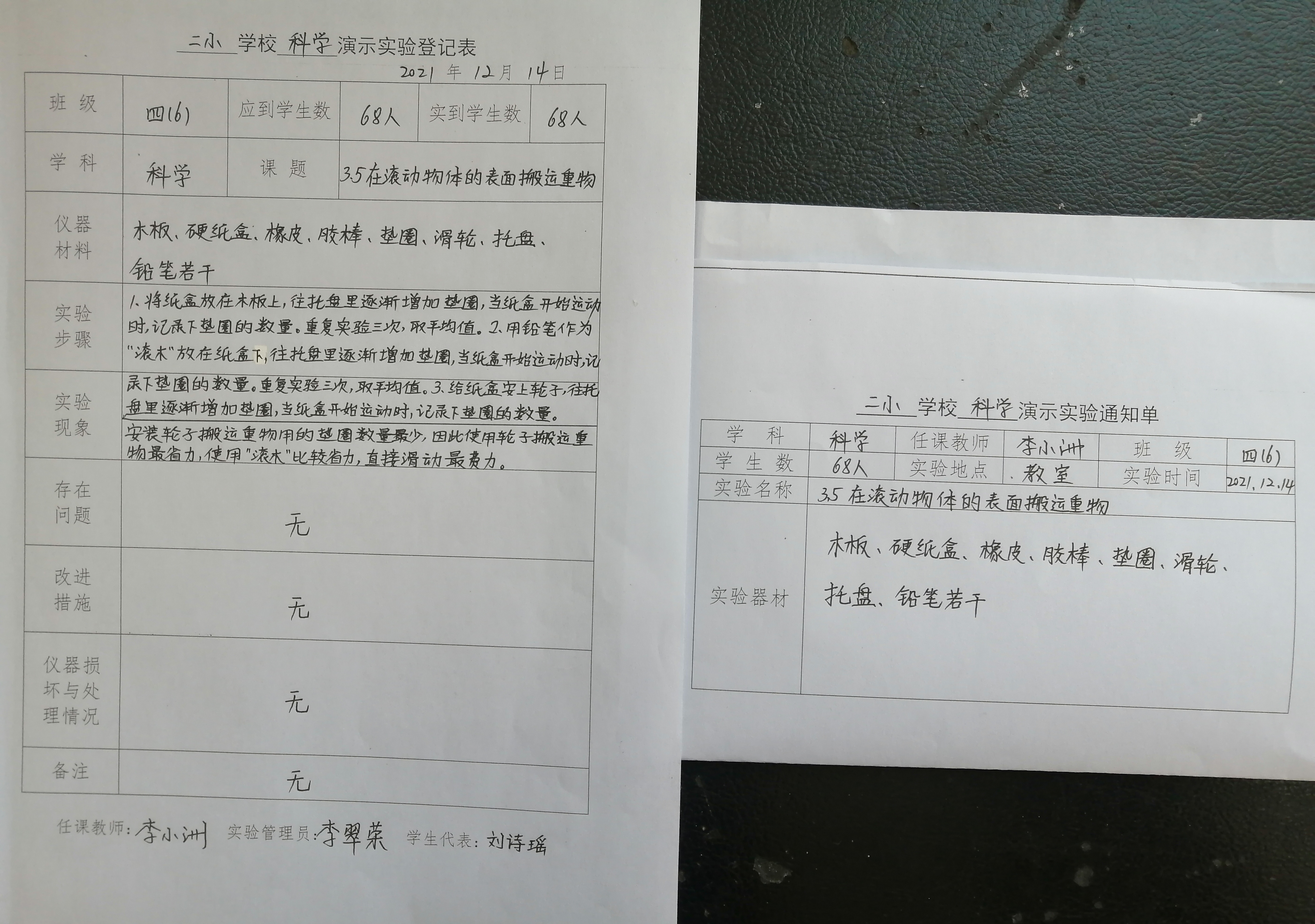实验登记表