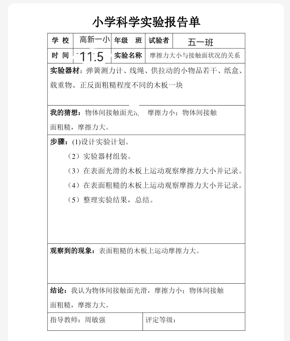 4.5探究摩擦力大小与接触面的光滑程度、物体重量的关系