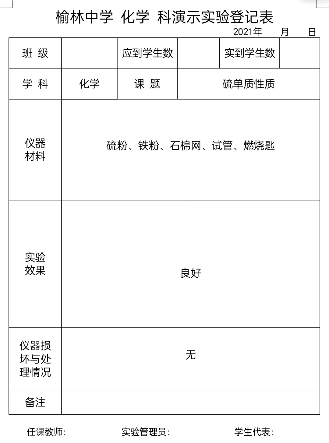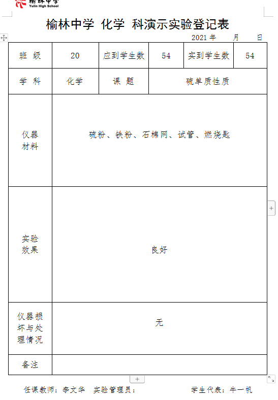 实验登记表