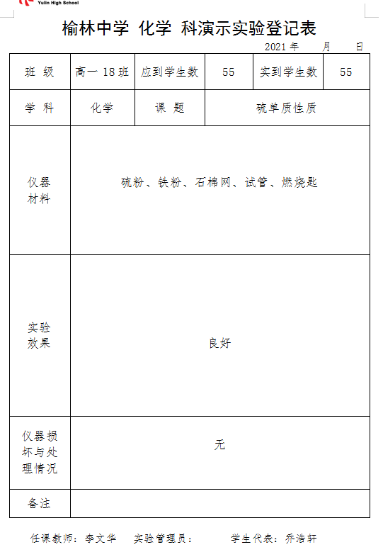 实验登记表