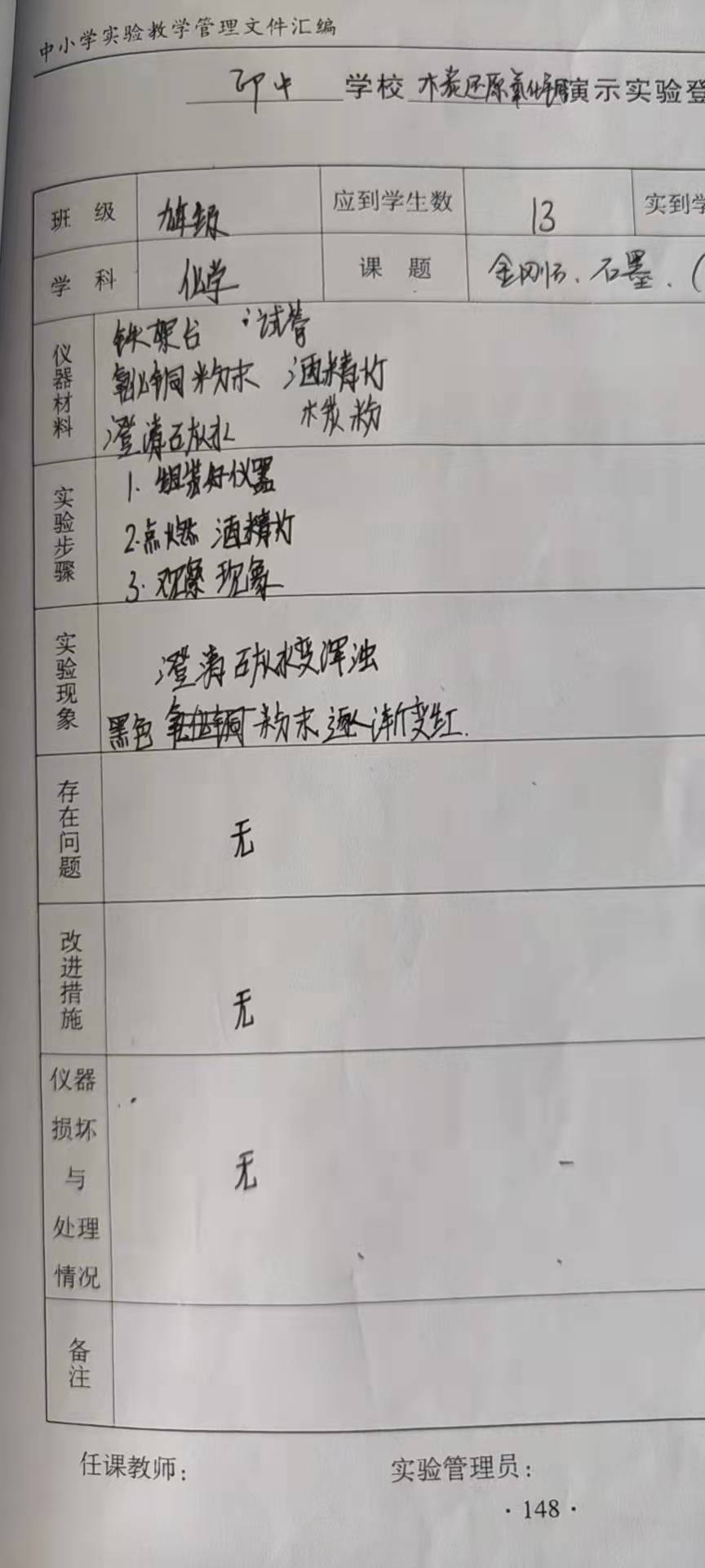 木炭还原氧化铜