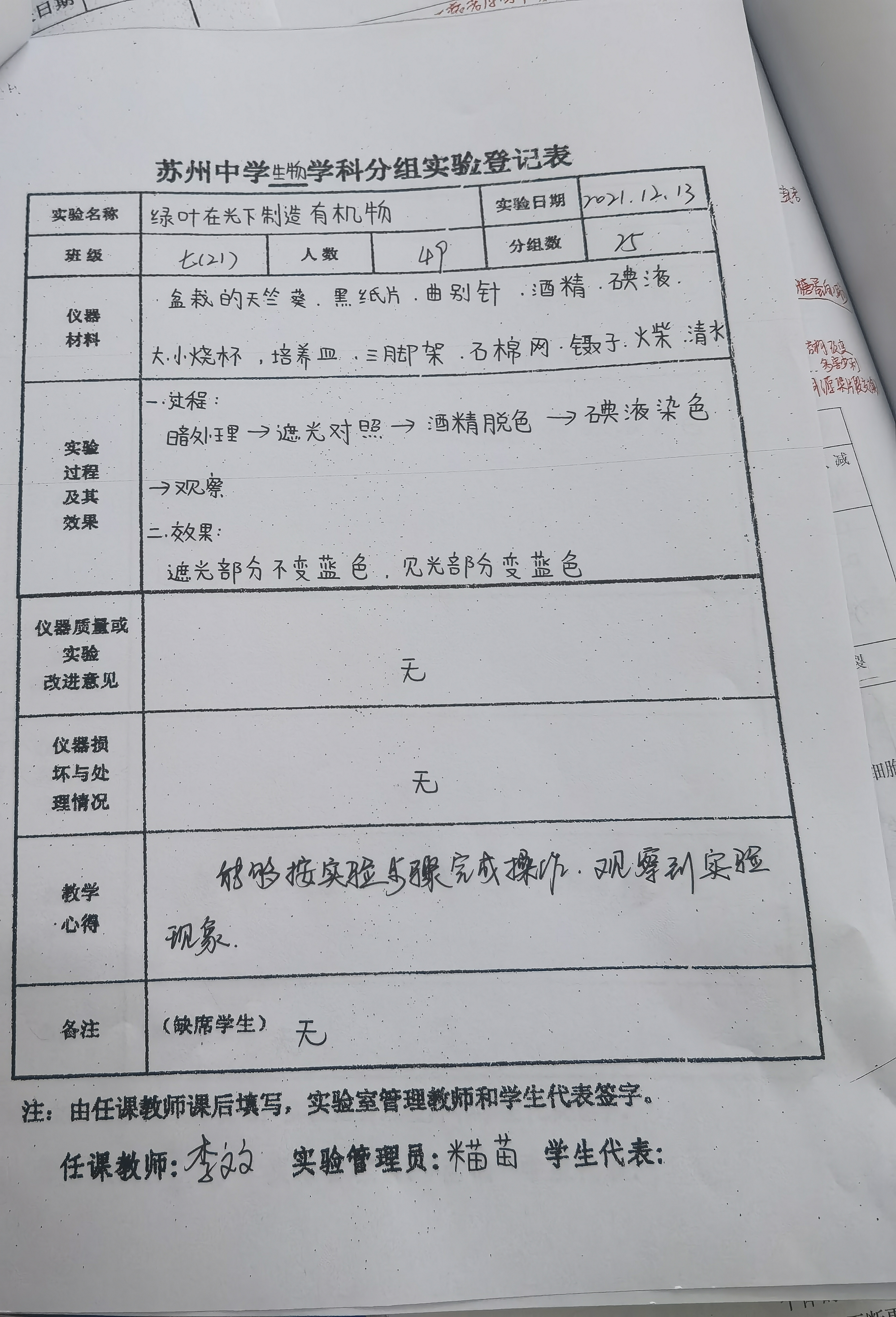 实验登记表