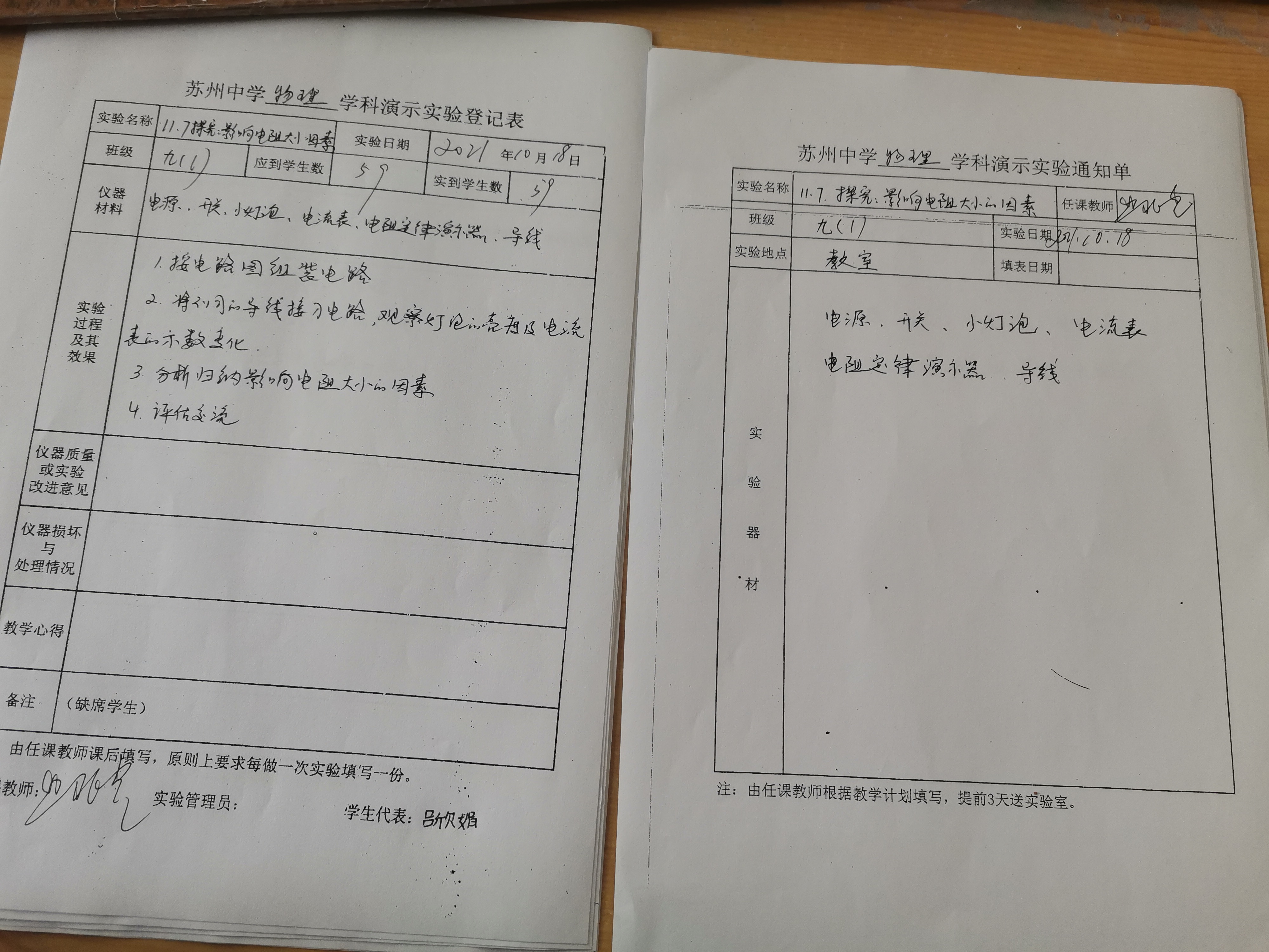 实验登记表