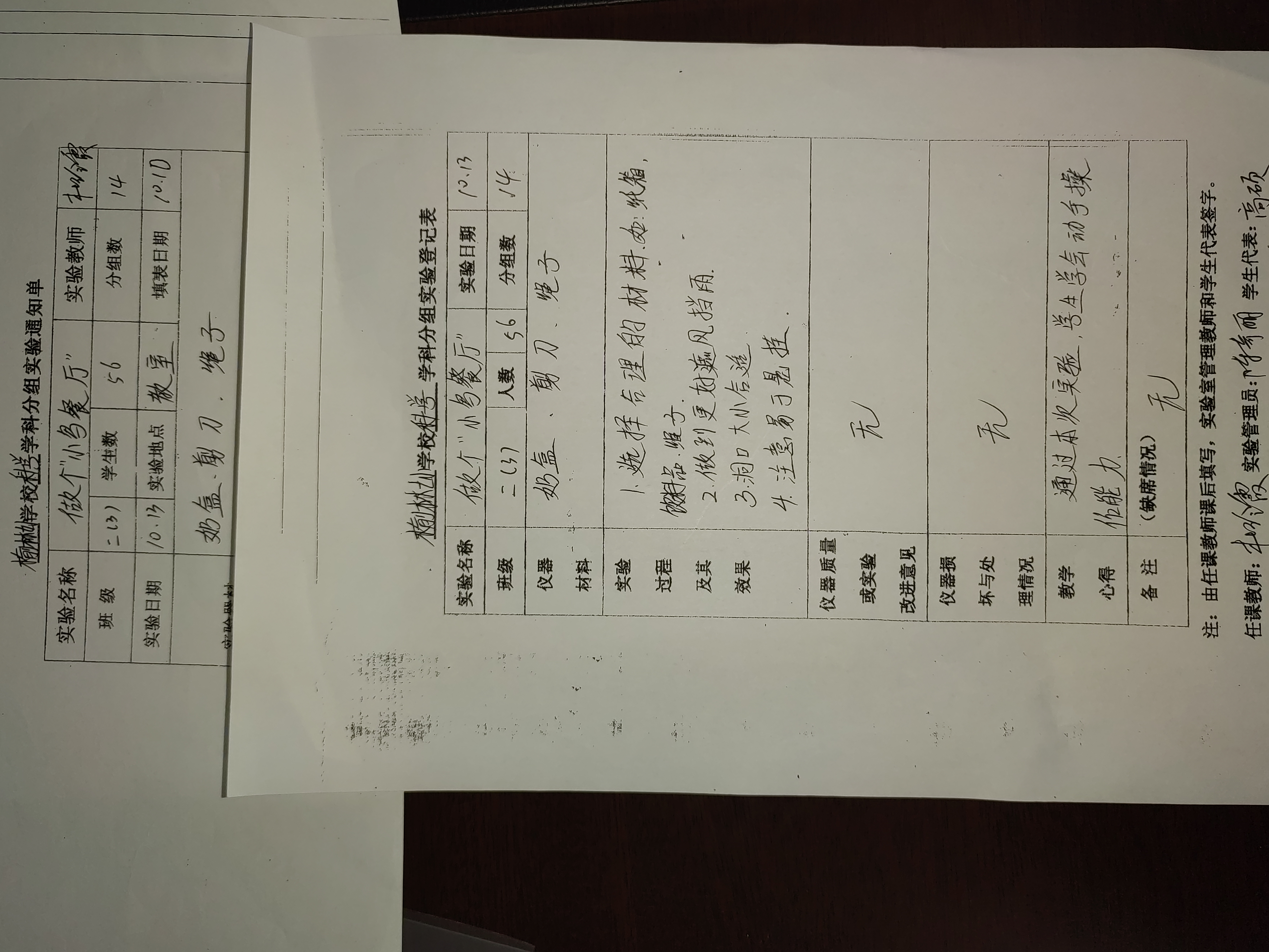 实验登记表