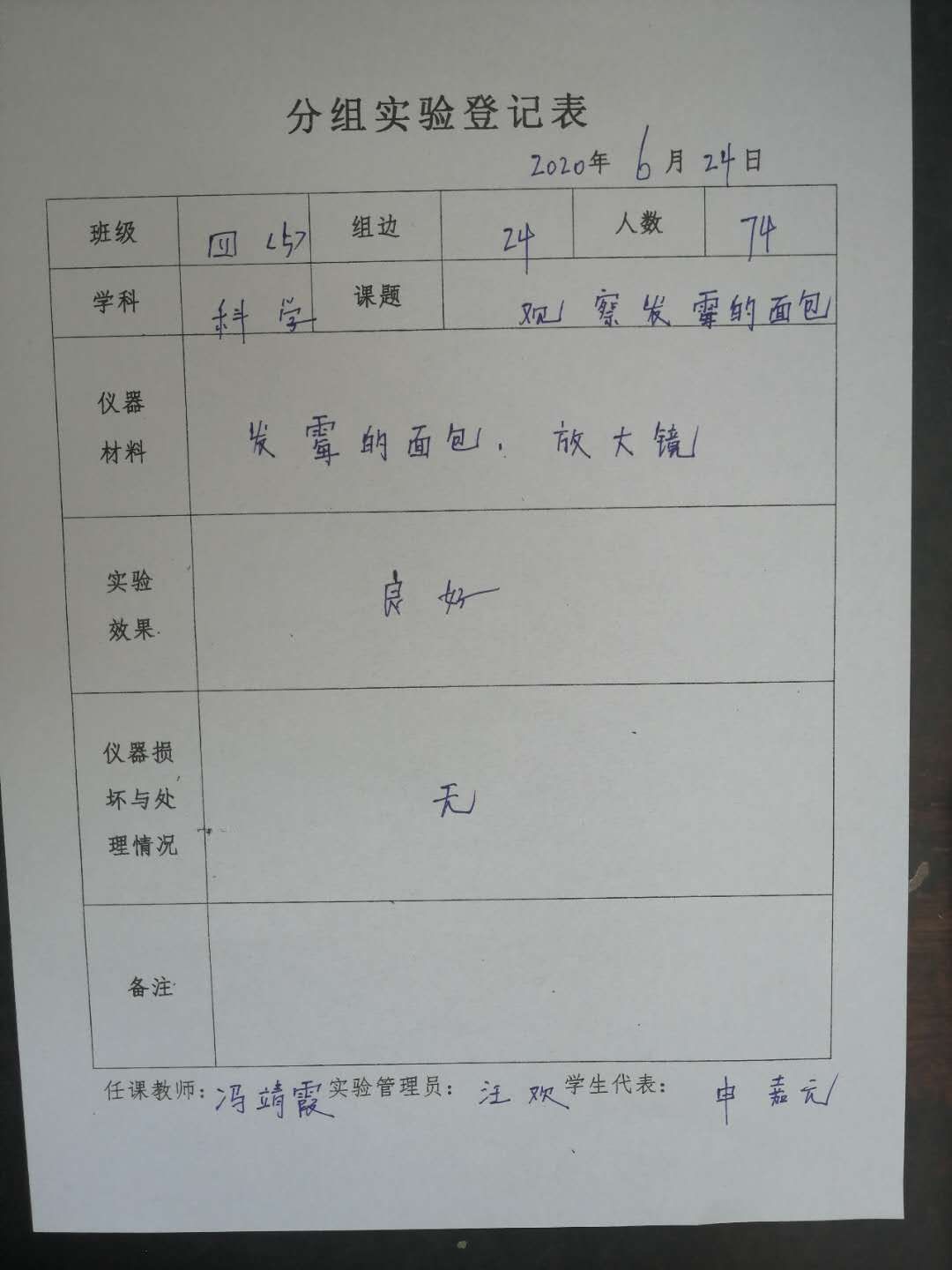 实验登记表