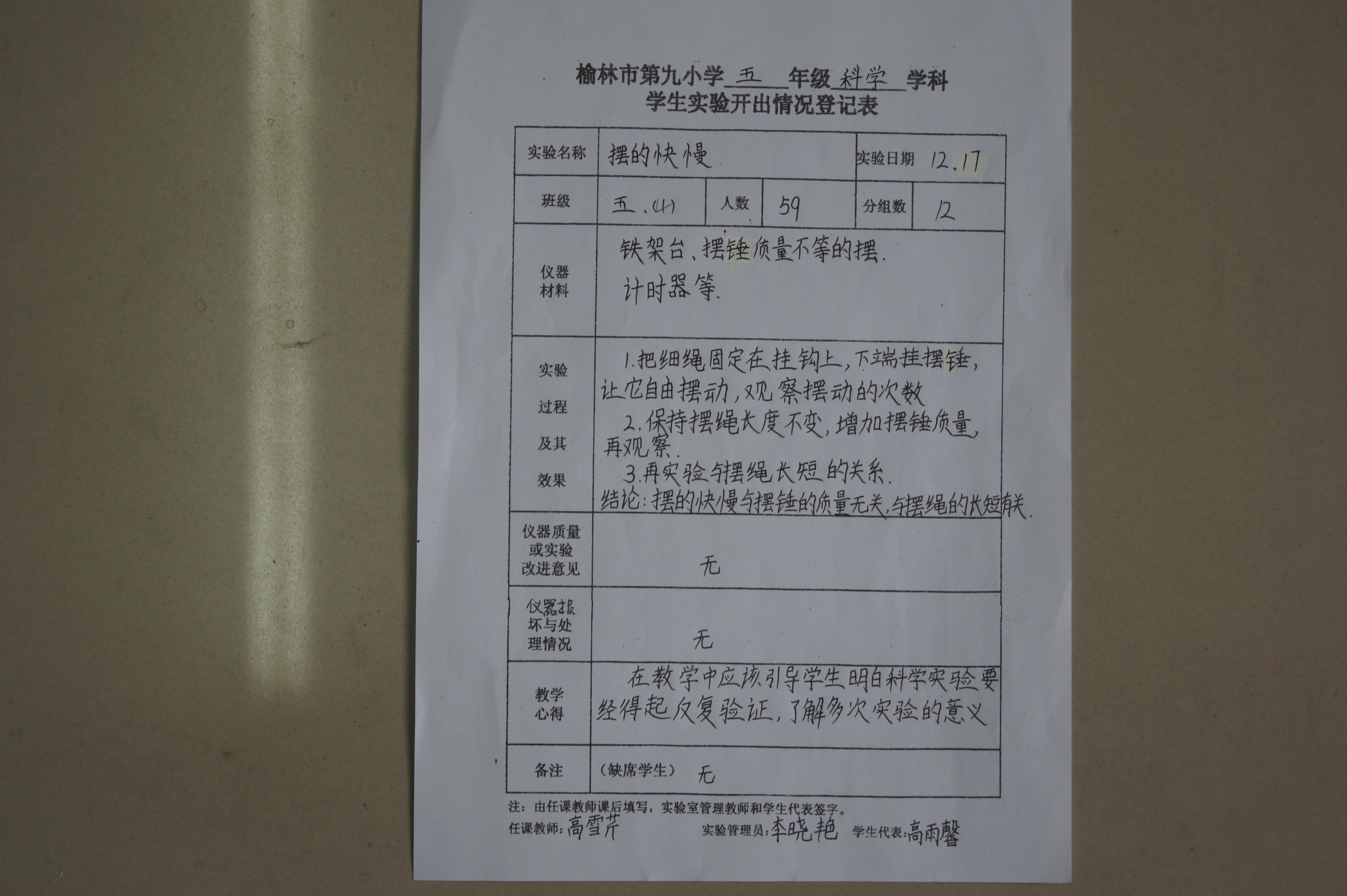 实验登记表
