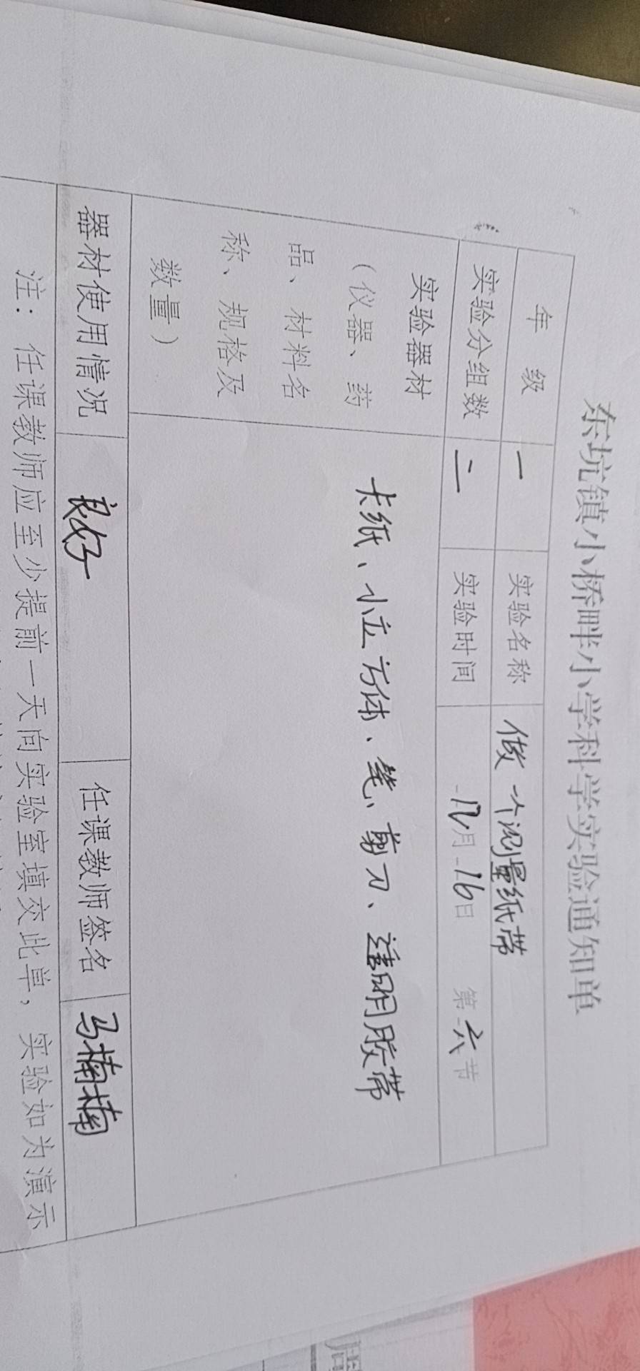 实验登记表
