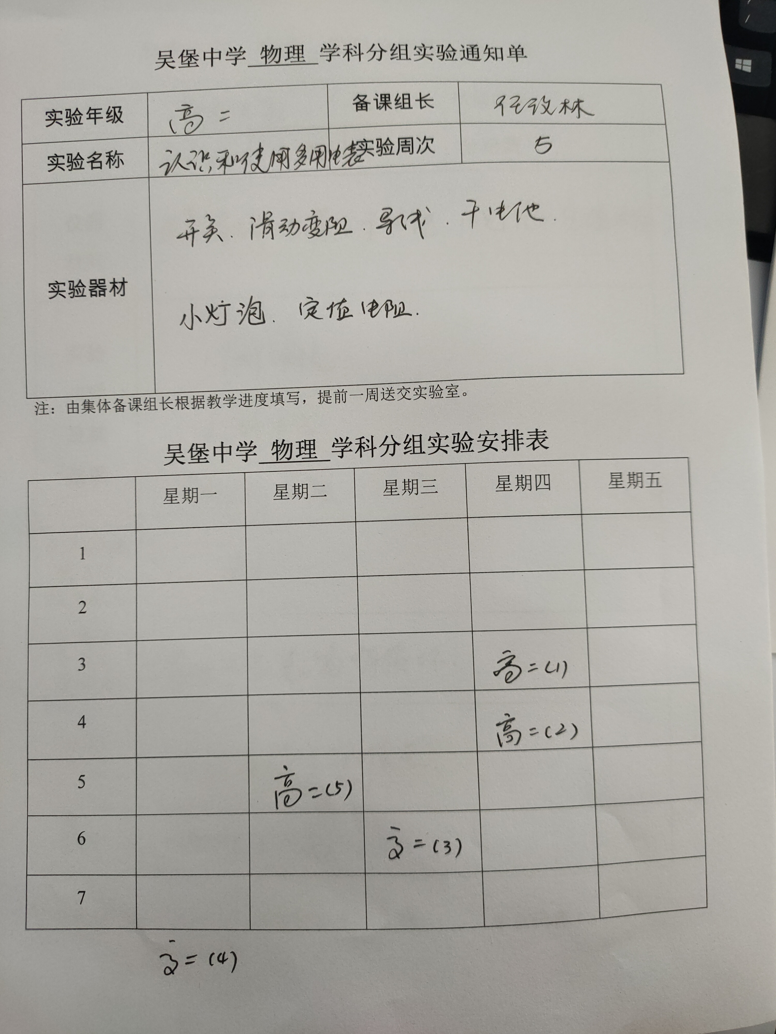 实验登记表