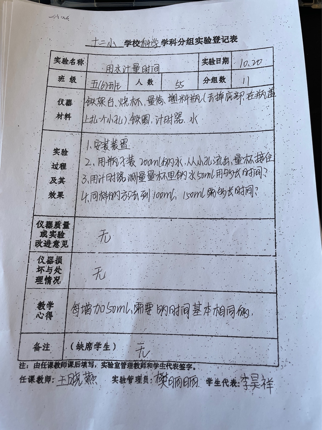 实验登记表