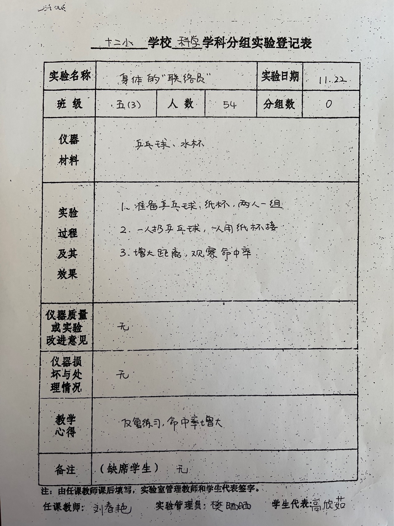 实验登记表
