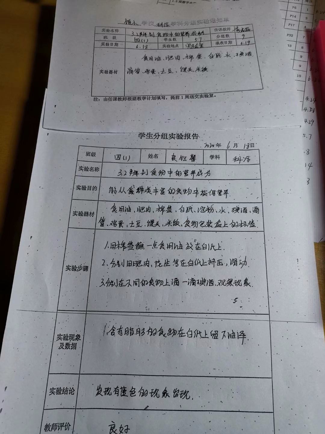 实验登记表