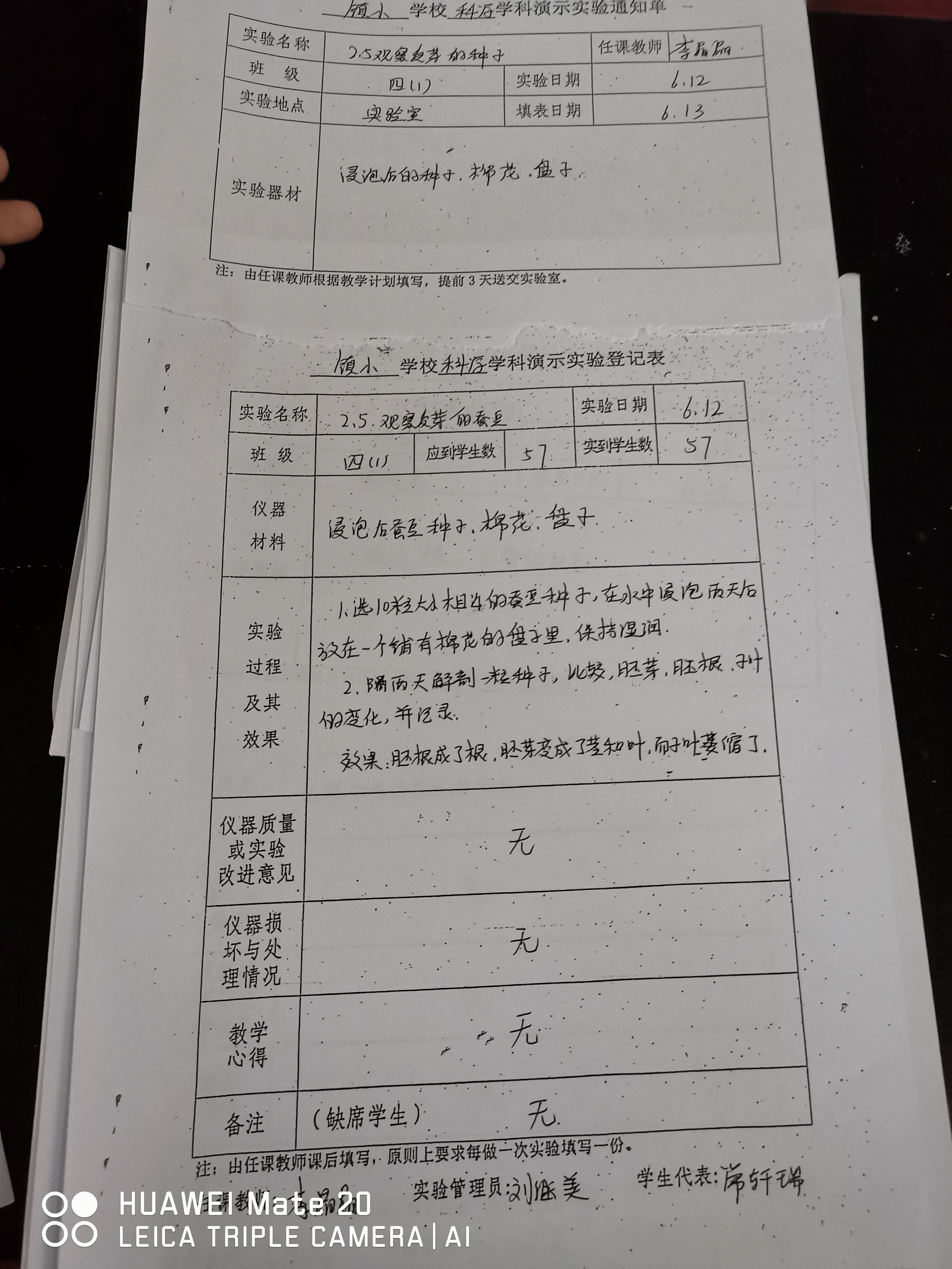 实验登记表
