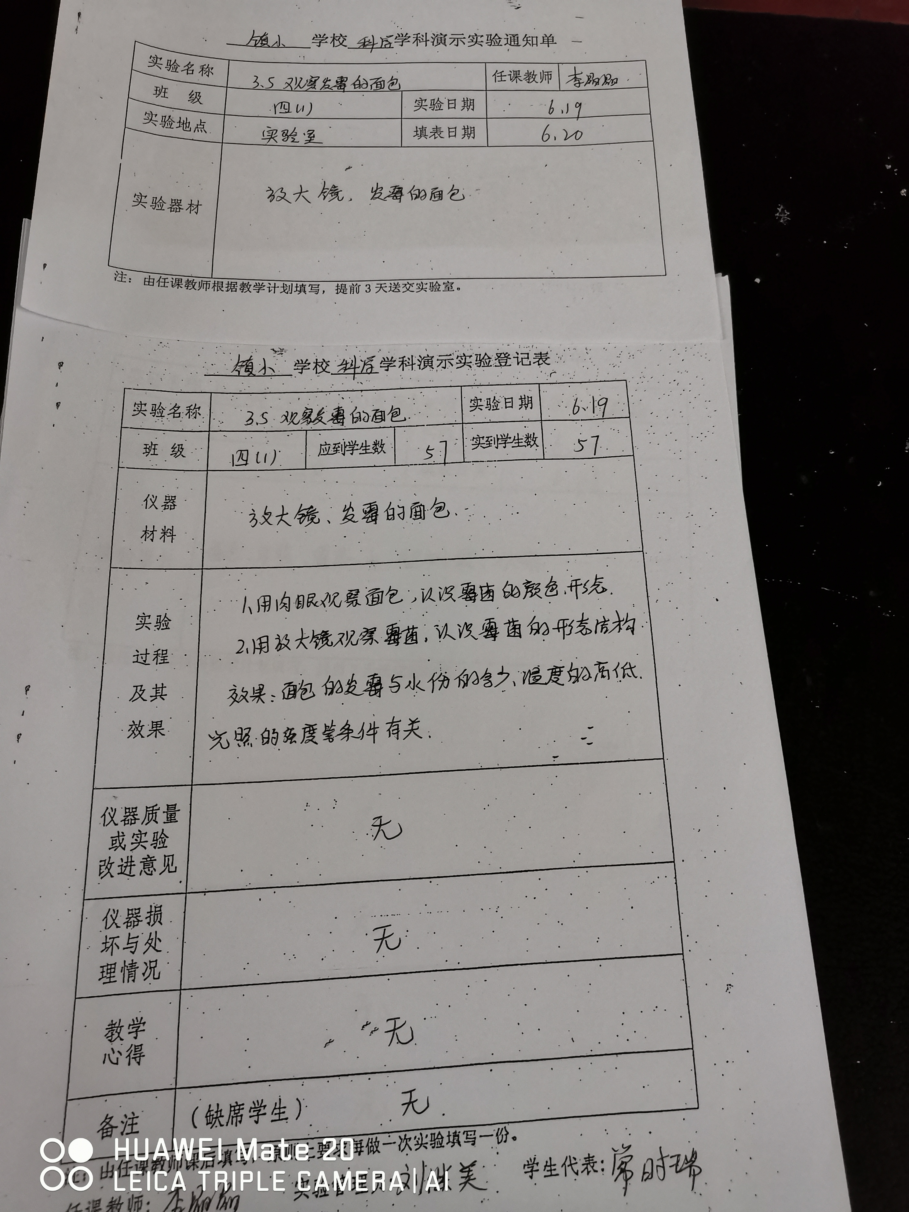 实验登记表