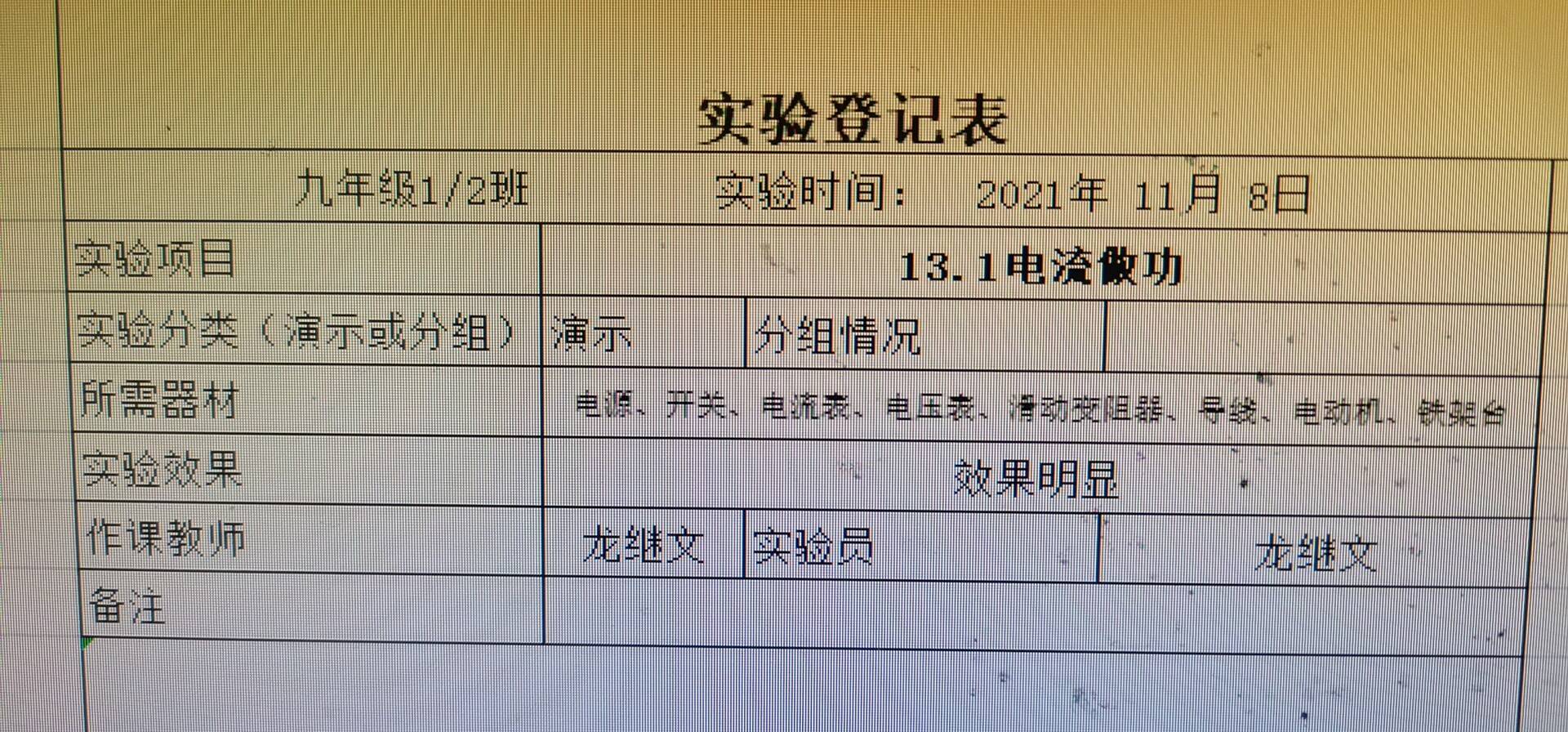 实验登记表