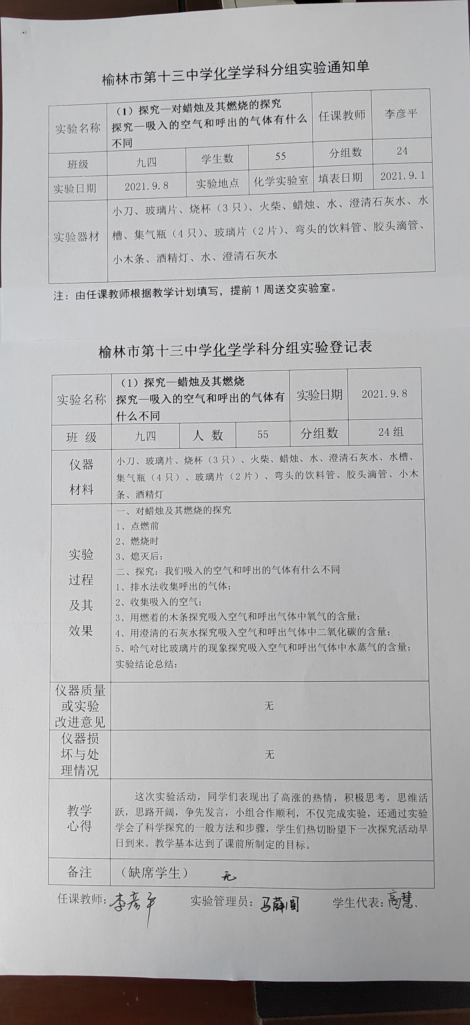 实验登记表
