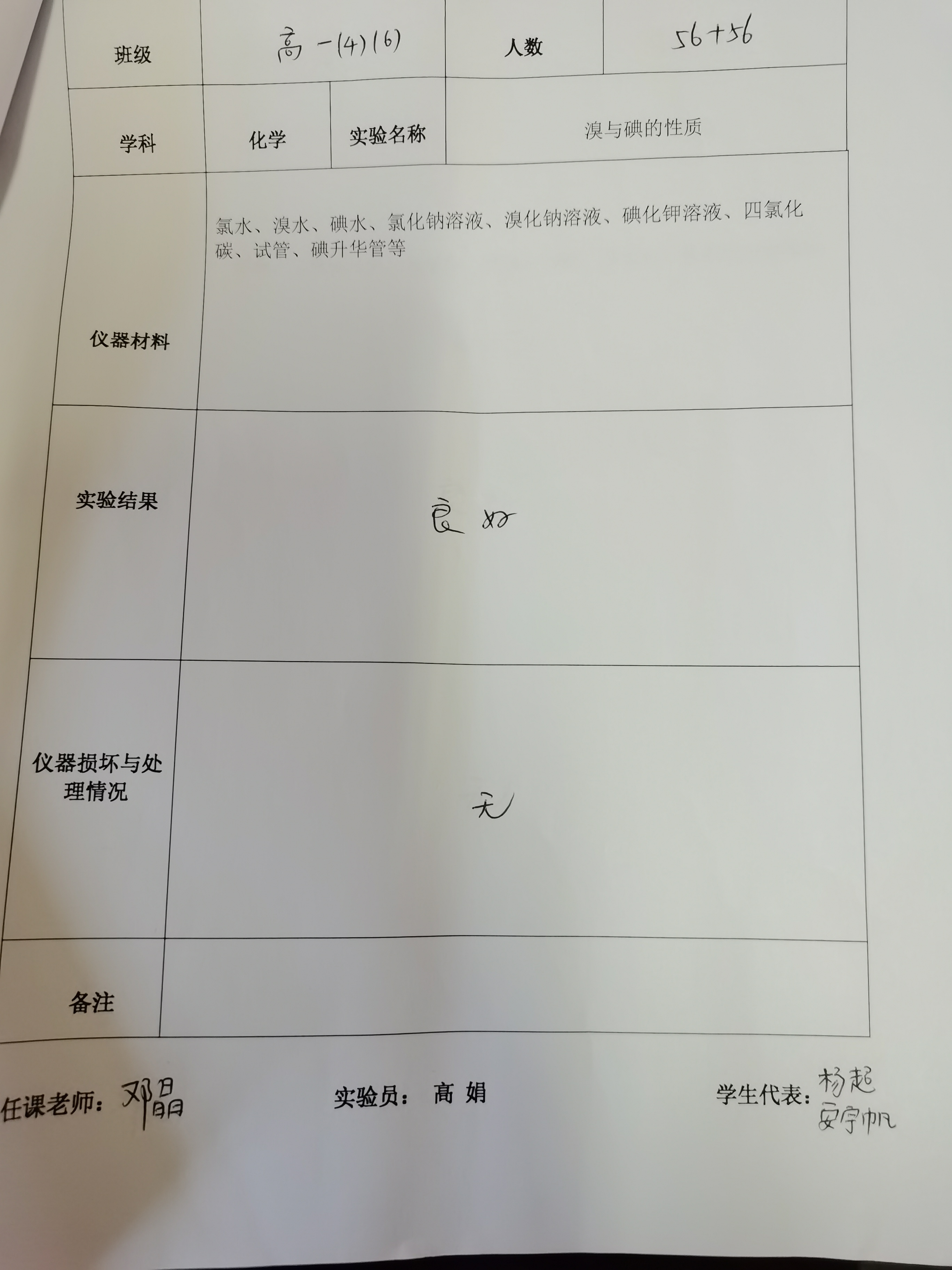实验登记表