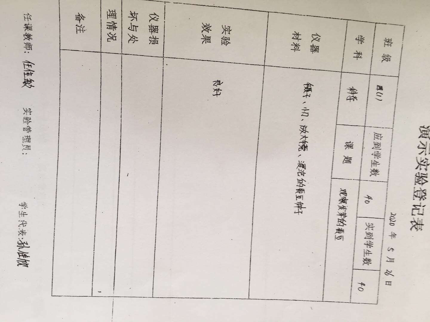 实验登记表