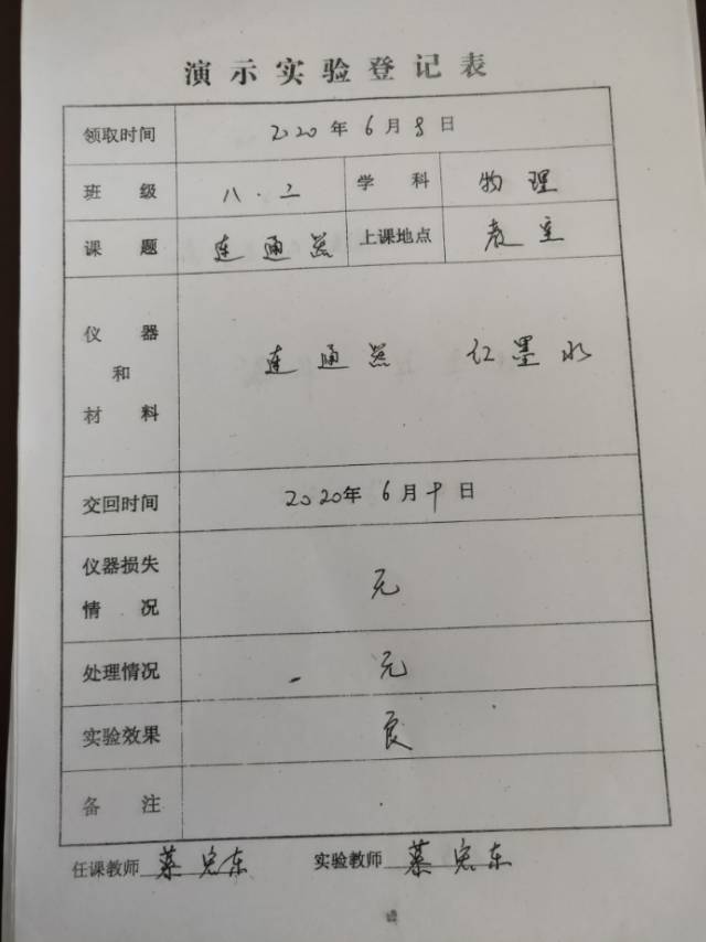 实验登记表