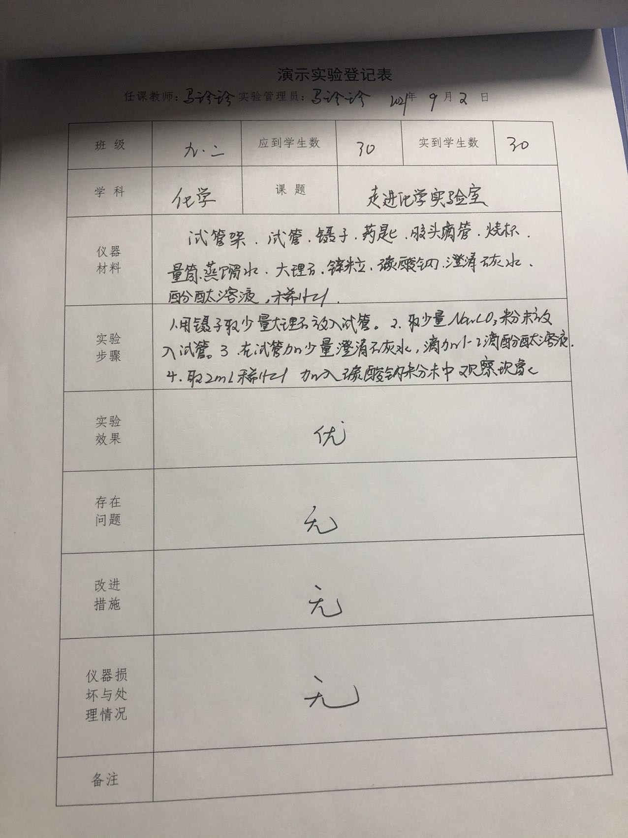 实验登记表