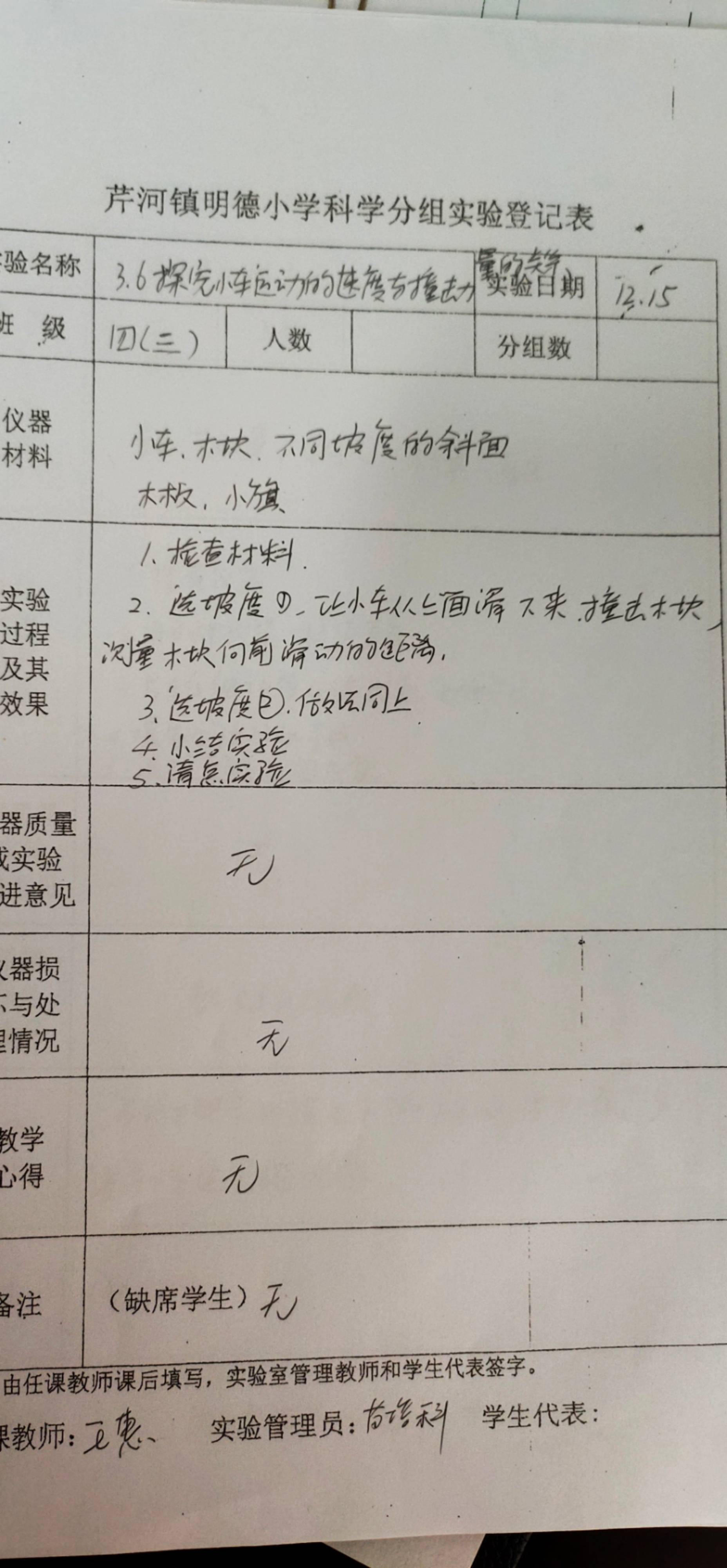 3.6探究小车运动的速度与撞击力量的关系(四三班)